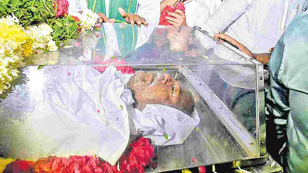 అందెశ్రీ మరణ వార్తతో తెలంగాణ తీవ్ర దిగ్ర్భాంతికి గురైంది. మట్టి మనిషి, పల్లెపదాల భావోద్వేగి ఇకలేరన్న వార్త తెలుసుకుని సాహితీప్రియులు తీవ్ర ఆవేదనకు లోనయ్యారు. అందెశ్రీ ఆకస్మిక మృతితో ఆయన కుటుంబ సభ్యులు రోదిస్తున్న దృశ్యాలు అందరినీ కంటతడి పెట్టించాయి. అభిమానుల సందర్శనార్థం అధికారులు సోమవారం మధ్యాహ్నం లాలాపేట్లోని ప్రొఫెసర్ జయశంకర్ స్టేడియంలో అందెశ్రీ పార్థివ దేహాన్ని ఉంచారు. పెద్దఎత్తున రాజకీయ నాయకులు, అభిమానులు, కవులు, రచయితలు, కళాకారులు తరలి వచ్చారు. అందెశ్రీ పార్థివ దేహంపై పుష్పగుచ్ఛాలు ఉంచి నివాళులర్పించారు. వారిలో మాజీ గవర్నర్ బండారు దత్తాత్రేయ, కేంద్ర మంత్రి కిషన్ రెడ్డి, ఎంపీలు మల్లు రవి, ఈటల రాజేందర్, చామల కిరణ్కుమార్ రెడ్డి, వద్దిరాజు రవిచంద్ర, రాష్ట్ర మంత్రులు దామోదర రాజనర్సింహ, జూపల్లి కృష్ణారావు, అడ్లూరి లక్ష్మణ్, వాకిటి శ్రీహరి, మాజీ మంత్రులు కేటీఆర్, హరీశ్ రావు, తలసాని శ్రీనివా్సయాదవ్, పద్మారావుగౌడ్, జగదీశ్ రెడ్డి, శ్రీనివా్సగౌడ్, ప్రభుత్వ సలహాదారు వేం నరేందర్ రెడ్డి, స్టేట్ ఫైనాన్స్ కమిషన్ చైర్మన్ సిరిసిల్ల రాజయ్య, వెన్నెల గద్దర్, బీసీ కమిషన్ చైర్మన్ నిరంజన్, ఎమ్మెల్యే మందుల సామేలు, ఎమ్మెల్సీ గోరటి వెంకన్న, కోదండరాం, కల్వకుంట్ల కవిత, సీతారాంనాయక్, వి.హనుమంతరావు, హైదరాబాద్ కలెక్టర్ హరిచందన దాసరి, సీపీ సజ్జనార్, తదితరులు ఉన్నారు. అందెశ్రీ అందించిన సేవలను కొనియాడారు. అందెశ్రీతో తమకున్న వ్యక్తిగత అనుబంధాన్ని, పాత జ్ఞాపకాలను గుర్తు చేసుకుని కన్నీటి పర్యంతమయ్యారు.