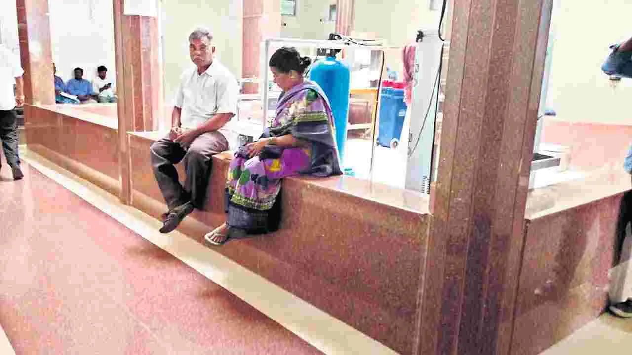 మిర్యాలగూడ టౌన, ఆగస్టు 10(ఆంధ్రజ్యోతి): వినియోగదారులు దేవుళ్లంటారు వ్యాపారులు. ఓటర్లు దైవం తో సమానమంటారు రాజకీయనాయకులు. అయితే సేవ లు పొందేందుకు వచ్చే పౌరులు మాకేమీ కాదంటున్నారు మునిసిపల్ ఉద్యోగులు. జనన, మరణ ధ్రువీకరణ పత్రా లు, గృహ నిర్మాణ అనుమతులు, వ్యాపార లైసెన్సులు, వృద్ధ, దివ్యాంగుల పింఛన్లు, పావలా వడ్డీ రుణాలు ఆస్తి, నీటి పన్ను చెల్లింపుల కోసం నిత్యం వందలాది మంది వ స్తుంటారు మునిసిపల్ కార్యాలయానికి. అయితే ఆ సేవలు పొందేందుకు వచ్చే వారి కోసం కుర్చీ, టేబుల్ ఏ ర్పాటు చేయడం లేదు మునిసిపల్ అధికారులు. గ్రేడ్ తగ్గుతుందనో, ర్యాంకు పడిపోతుందనో, మరే కారణం చేతనో కానీ.. నిలువెత్తు నిర్లక్ష్యం ప్రదర్శిస్తున్నారు పురపాలకులు. సేవలు పొందేందుకు కార్యాలయానికి వచ్చిన పౌరులు అక్కడి అరుగులపై లేదా కార్యాలయంలో పార్క్ చేసిన వాహనాలపై ఆధారపడి తమ దరఖాస్తులు నిం పుకోవాల్సిన పరిస్థితి ఏర్పడింది.