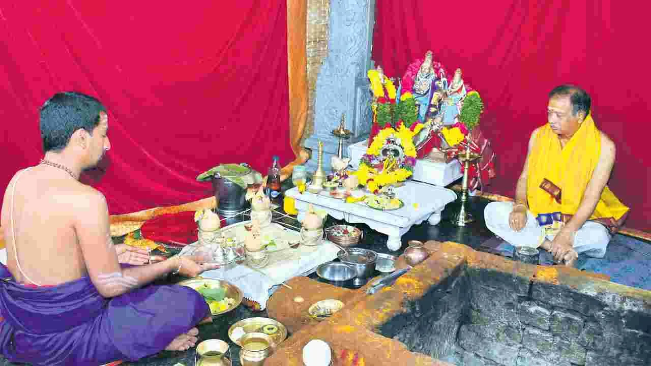 శివకేశవులకు విశేష పూజలు కొనసాగాయి. స్వయంభు స్వామిఅమ్మవారికి శ్రీ వైష్ణవ పాంచరాత్రాగమరీతిలో, పర్వతవర్థిని రామలింగేశ్వరస్వామి శివాలయంలో స్ఫటికమూర్తులకు శైవాగమశాస్త్రరీతిలో నిత్య కైంకర్యాలు నిర్వహించారు. ప్రధానాల యంలో సుప్రభాత సేవతో స్వామిఅమ్మవారిని మేల్కొలిపిన అర్చకులు మూల మూర్తులను వేదమంత్ర పఠనాలు, పంచామృతాలతో అభిషేకించి, తులసీ దళాలతో అర్చించారు. అష్టభుజి ప్రాకార మండపంలో ఉత్సవమూర్తులను దివ్యమనోహరంగా అలంకరించి విశ్వక్సేనుడికి తొలి పూజలు చేపట్టి సుదర్శన హోమం, నిత్య కల్యాణో త్సవం నిర్వహించారు. శివాలయంలోని ముఖమండపంలో స్ఫటికమూర్తులను అర్చ కులు వేదమంత్ర పఠనాలు, మంగళ వాయిద్యాల మధ్య పంచామృతాలతో అభిషే కించారు. వివిధ విభాగాల ద్వారా ఆలయ ఖ జానాకు రూ.19,44,856ల ఆదాయం సమకూ రినట్లు ఈవో భాస్కర్రావు తెలిపారు.