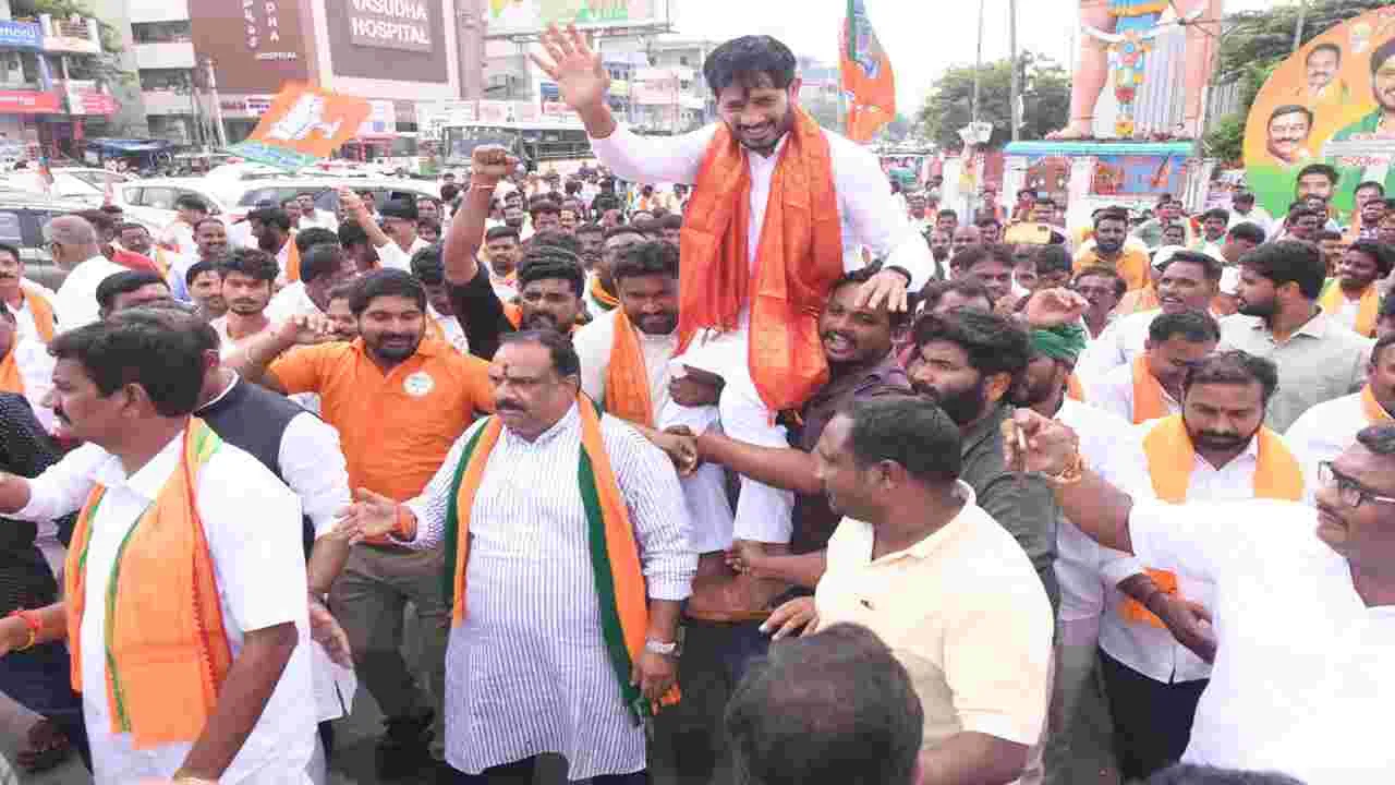 మంచిర్యాల కలెక్టరేట్, సెప్టెంబరు 12 (ఆంధ్రజ్యోతి) : దేశ రక్షణ బీజేపీతోనే సాధ్యమని, పార్టీలో కష్టపడ్డ ప్రతి కార్యకర్తకు సముచిత స్థానం లభిస్తుందని ఆదిలాబాద్ ఎంపీ గోడం నగేష్ పేర్కొన్నారు. శుక్రవారం బీజేపీ రాష్ట్ర ఉపాధ్యక్షుడిగా నియామకమైన తర్వాత మొ దటిసారిగా మంచిర్యాలకు వచ్చిన వెరబెల్లి రఘునాథ్ అభినందన సభలో ఎంపీ పాల్గొన్నారు. కార్యకర్తల బైక్ ర్యాలీతో బీజేపీ శ్రేణులు రఘునాథ్కు ఘనంగా స్వాగతం పలికారు. ఐబీ చౌరస్తాలోని హ ను మాన్ విగ్రహం వద్ద ఆదిలాబాద్ ఎంపీ నగేష్, ఆదిలాబాద్ ఎమ్మె ల్యే పాయల్ శంకర్, మాజీ ఎంపీ బోర్లకుంట వెంకటేష్నేతతో కలిసి హనుమాన్ విగ్రహానికి ప్రత్యేక పూజలు చేశారు. అనంతరం అంబే ద్కర్ విగ్రహానికి పూలమాలలు వేసి నివాళులర్పించారు. ఎంపీ, ఎ మ్మెల్యేలకు బీజేపీ నాయకులు భారీ గజమాలతో స్వాగతం పలికా రు. బీజేపీ జిల్లా అధ్యక్షుడు నగునూరి వెంకటేశ్వర్గౌడ్ నేతృత్వంలో పట్టణంలో భారీ బైక్ ర్యాలీ నిర్వహించారు. అనంతరం కాలేజీ రోడ్డులోని పద్మనాయక పంక్షన్హాలులో ఏర్పాటు చేసిన అభినందన సభలో వారు మాట్లాడుతూ రాబోయే ఎన్నికల్లో బీజేపీ జెండా ఎగ రడం ఖాయమన్నారు. దేశ రక్షణకు బీజేపీ రక్షణ కవచంలా ఉం టుందన్నారు. ప్రజాభీష్టం మేరకే బీజేపీ పరిపాలన ఉంటుందని, అవినీతి, అక్రమాలు ఉండవన్నారు. కాంగ్రెస్ ప్రభుత్వం మోసపూ రిత హామీలతో అధికారంలోకి వచ్చి రెండేళ్లు గడుస్తున్నా చేసింది శూన్యమన్నారు. అనంతరం రఘునాథ్ మాట్లాడుతూ ఉమ్మడి ఆది లాబాద్ జిల్లా బీజేపీ కంచుకోటగా చెప్పుకోవచ్చన్నారు. కార్యకర్తల కృషి వల్లనే తాను ఈ స్థాయికి వచ్చానని తెలిపారు. స్థానిక సంస్థల ఎన్నికల్లో అన్ని స్థానాలను బీజేపీ కైవసం చేసుకుంటుందన్నారు. తా ను చేసిన పోరాటం ద్వారా మంచిర్యాల రైల్వేస్టేషన్లో వందేభారత్ రైలు ఆగేలా కేంద్రం నిర్ణయం తీసుకుందన్నారు. ఈ కార్యక్రమంలో నాయకులు గోనె శ్యాంసుందర్రావు, కొయ్యల ఏమాజీ, శ్రీశైలం, పె ద్దపల్లి పురుషోత్తం, మున్నారాజాసిసోడియా, గాజులముకేష్గౌడ్, జో గుల శ్రీదేవి, సత్తయ్య, కమలాకర్రావు, కోడి రమేష్, వెంకటకృష్ణ, రమేష్, వెంకటేశ్వర్రావు, అశోక్, కృష్ణమూర్తి, తిరుపతి, శ్రీధర్, సం తోష్, జయశ్రీ, సురేఖ పాల్గొన్నారు.