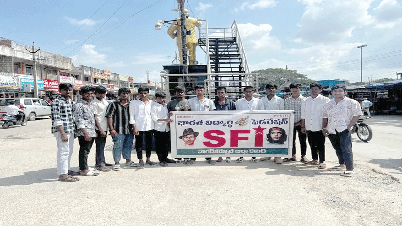 నాగర్కర్నూల్ టౌన్, నవంబరు 1 (ఆంధ్రజ్యోతి) : ఫీజు రీయింబ ర్స్మెంట్, స్కాలర్షిప్లు అందక ఇబ్బందులు పడుతున్న విద్యార్థుల ను రాష్ట్ర ప్రభుత్వం విస్మరించిందని ఎస్ఎఫ్ఐ జిల్లా కార్యదర్శి ఎం.తారా సింగ్ విమర్శించారు. శనివారం ఎస్ ఎఫ్ఐ ఆధ్వర్యంలో జిల్లా కేంద్రంలోని అంబేడ్కర్ చౌరస్తాలో విద్యార్థులు నిరసన వ్యక్తం చేశారు. ఆయన మాట్లాడుతూ జూబ్లిహి ల్స్ ఉప ఎన్నికల ప్రచారంలో సినీ కార్మికుల కోసం కార్పొరేట్ స్థాయిలో పాఠశాలను ఏర్పా టు చేసి ఉచిత విద్యను అందిస్తామని హామీలు గుప్పి స్తున్న సీఎం రేవంత్రెడ్డి రాష్ట్రంలో విద్యా ర్థులకు ఫీజు రీయింబర్స్మెంట్, స్కాలర్షిప్లు ఎందుకు విడుదల చేయడం లేదని ప్రశ్నించా రు. పెండింగ్లో ఉన్న ఫీజురీఎంబర్స్మెంట్, స్కాలర్షిప్స్ తక్షణమే ఇవ్వాలని ఆయన కోరా రు. కార్యక్రమంలో ఎస్ఎఫ్ఐ నాయకులు వంశీ, దేవదాస్, భరత్, నాగరాజు, సిద్దు, సురేందర్, విజయ్ పాల్గొన్నారు.