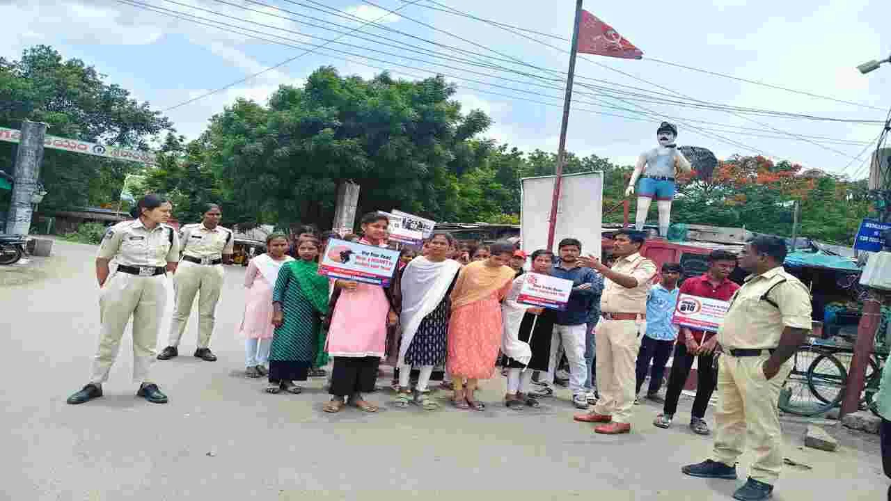 శ్రీరాంపూర్, జూన్ 20 (ఆంధ్రజ్యోతి) : ట్రాఫిక్ నియమాలు తప్పక పాటించాలని శ్రీరాంపూర్ ఎస్ఐ సంతోష్ అన్నారు. శుక్రవారం ఆయన ఆధ్వర్యంలో శ్రీరాంపూర్ బస్టాండ్లో విశ్వశాంతి పాఠశాల విద్యార్థులకు అవగాహన కల్పించారు. పాఠశాల బస్సుల ద్వారా చిన్నారులకు ప్రమాదాలు జరుగుతున్న నేపథ్యంలో జాగ్రత్తగా ఉండాలని సూచించారు. అలాగే రోడ్డు దాటే సమయంలో, పిల్లలను స్కూల్కి డ్రాప్ చేసే సమయంలో తల్లిదం డ్రులు సైతం తప్పక హెల్మెట్ ధరించాలన్నారు. మైనర్లు ద్విచక్రవాహనాలు నడపడం వల్ల తల్లిదండ్రులకు శిక్ష పడుతుందని ఆయన హెచ్చరించారు. ద్విచక్ర వాహనాలు నడిపేవారు హెల్మెట్ ధరించాలని, కారు నడిపేవారు సీట్ బెల్టు పెట్టుకోవాలని కోరారు. డ్రైవింగ్ సమయంలో సెల్ఫోన్ వాడరాదని, అతివేగంగా డ్రైవింగ్ చేయవద్దని అన్నారు. రోడ్డుపై వాహనాలు నడిపే సమయంలో జాగ్రత్తలు పాటించాలని ఎస్ఐ కోరారు.