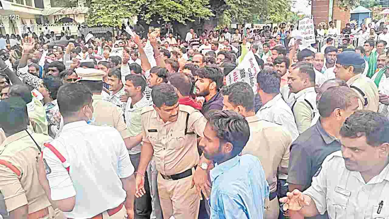 హెచ్ఎండీఏ ఎదుట ట్రిపుల్ఆర్ బాధిత రైతుల ఆందోళన.. హైవేపై రాస్తారోకో