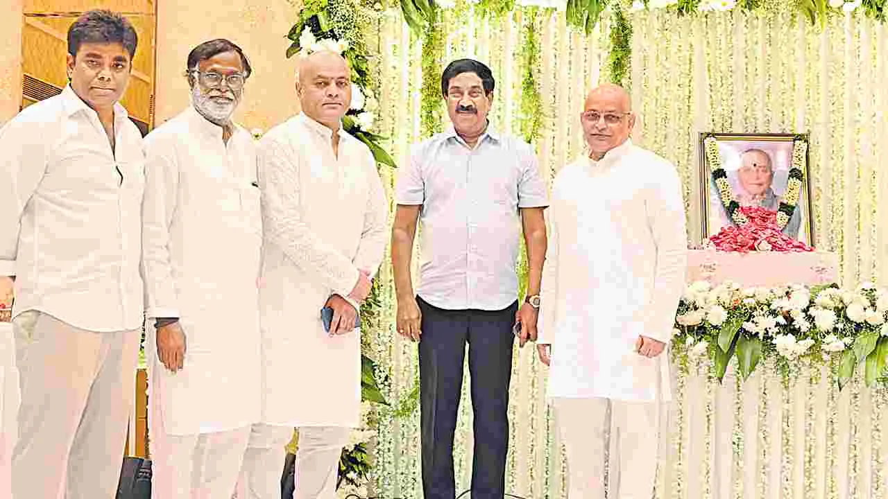 హైదరాబాద్ సిటీ, అక్టోబరు 22 (ఆంధ్రజ్యోతి): చేవెళ్ల మాజీ ఎమ్మెల్యే, న్యూస్ అండ్ సర్వీసెస్ సిండికేట్(ఎన్ఎ్సఎ్స) వార్తా ఏజెన్సీ వ్యవస్థాపకుడు కొండా లక్ష్మారెడ్డి దశదినకర్మ కార్యక్రమం లోయర్ట్యాంక్ బండ్లోని పింగళి వెంకటరామారెడ్డి కన్వెన్షన్ సెంటర్లో బుధవారం జరిగింది. ఏబీఎన్-ఆంధ్రజ్యోతి సంస్థల మేనేజింగ్ డైరెక్టర్ వేమూరి రాధాకృష్ణ ఈ కార్యక్రమానికి హాజరై లక్ష్మారెడ్డికి పుష్పాంజలి ఘటించి, నివాళులర్పించారు. లక్ష్మారెడ్డి కుమారులు విజిత్రెడ్డి, శైలేందర్రెడ్డిలను పరామర్శించారు. మాజీ గవర్నర్ బండారు దత్తాత్రేయ, ఎంపీలు కొండా విశ్వేశ్వర్రెడ్డి, ఈటల రాజేందర్, మాజీ ఎంపీ జితేందర్రెడ్డి, మాజీ ఎమ్మెల్యే మర్రి శశిధర్ రెడ్డి, మర్రి రవీందర్రెడ్డి, కొండా రాఘవరెడ్డి, మీడియా అకాడమీ చైర్మన్ కె.శ్రీనివాసరెడ్డి, సీనియర్ జర్నలిస్టు ఐ.వెంకట్రావు, కేంద్ర మాజీ మంత్రి పల్లంరాజు తదితరులు లక్ష్మారెడ్డికి నివాళులర్పించారు.