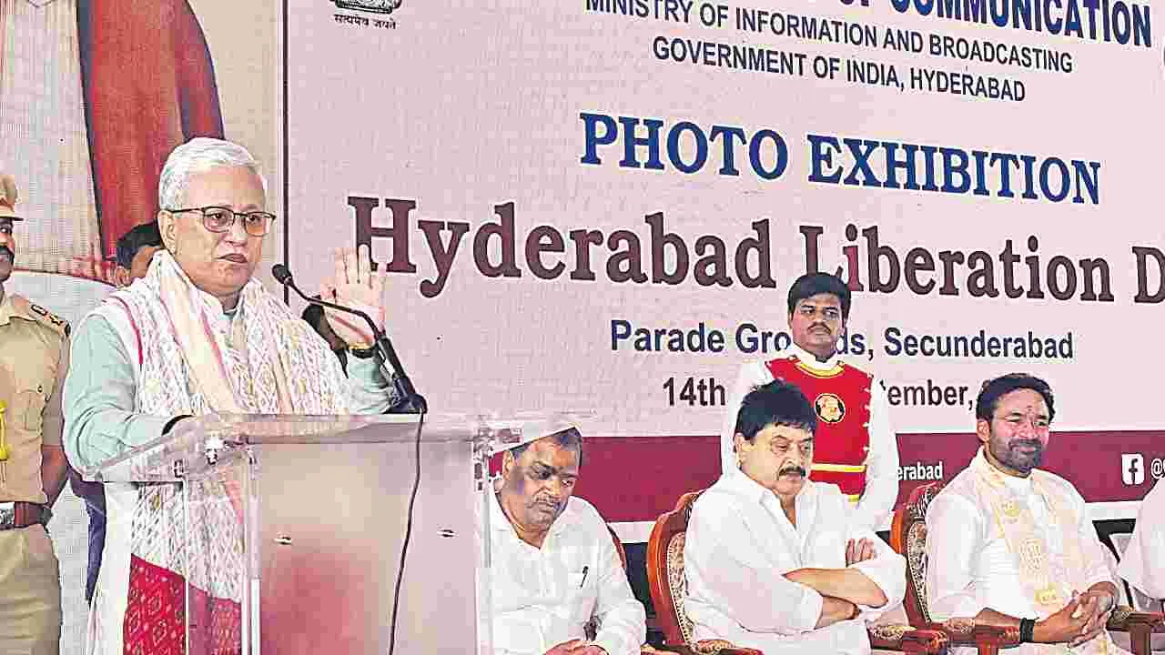 సికింద్రాబాద్, సెప్టెంబరు 14(ఆంధ్రజ్యోతి): నిజాం పాలనలో ప్రజలు ఎదుర్కొన్న ఇబ్బందులు, నాడు జరిగిన ప్రజాపోరాటాలను కళ్లకు కట్టినట్టు చూపించేలా ఏర్పాటు చేసిన వర్చువల్ మ్యూజియం అద్భుతమని గవర్నర్ జిష్ణుదేవ్వర్మ అన్నారు. తన సొంత రాష్ట్రమైన త్రిపుర చరిత్రను కూడా ఈ విధంగా ప్రదర్శించాలని ఆ రాష్ట్ర ముఖ్యమంత్రికి సూచన చేస్తానని తెలిపారు. సెప్టెంబరు 17న నిర్వహించనున్న హైదరాబాద్ విమోచన దినోత్సవంలో భాగంగా పరేడ్ గ్రౌండ్లో ఫొటో ఎగ్జిబిషన్, వర్చువల్ మ్యూజియంను ఏర్పాటు చేశారు. కేంద్ర మంత్రి కిషన్ రెడ్డి, ఎంపీ ఈటల రాజేందర్తో కలిసి ఆదివారం గవర్నర్ జిష్ణుదేవ్ వర్మ ఈ ప్రదర్శనలను ప్రారంభించారు. అనంతరం గవర్నర్ మాట్లాడుతూ హైదరాబాద్ విమోచన దినోత్సవాన్ని కేంద్ర ప్రభుత్వం నిర్వహించేలా చొరవ తీసుకున్న కేంద్ర మంత్రి జి.కిషన్రెడ్డి అభినందనీయులని పేర్కొన్నారు. కేంద్ర మంత్రి కిషన్ రెడ్డి మాట్లాడుతూ మజ్లిస్ పార్టీకి భయపడి బీఆర్ఎస్, కాంగ్రెస్ విమోచన దినోత్సవాన్ని నిర్వహించలేదని ఆరోపించారు. తాను కేంద్ర సాంస్కృతిక శాఖ మంత్రిగా ఉన్నప్పుడు విమోచన వేడుకల ఆవశ్యకతను ప్రధానికి వివరించానని తెలిపారు. ఈనెల 17న రాష్ట్రంలోని ప్రజలంతా త్రివర్ణ పతాకాన్ని ఎగురవేసి విమోచన వేడుకలను ఘనంగా జరపాలనిపిలుపునిచ్చారు. ఎమ్మెల్సీలు ఏవీఎన్ రెడ్డి, మల్క కొమరయ్య, అంజిరెడ్డి, బీజేపీ రాష్ట్ర అధ్యక్షుడు ఎన్.రాంచందర్రావు పాల్గొన్నారు.
