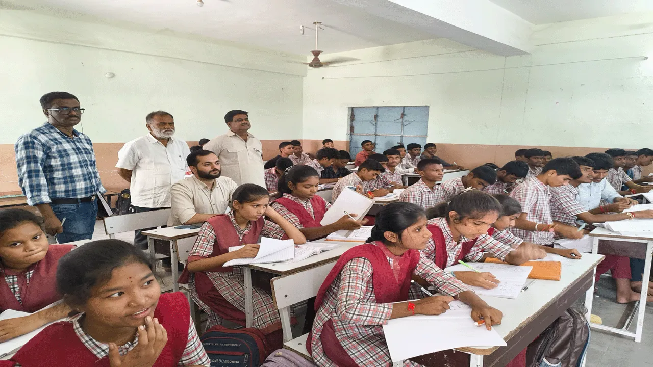 మండల కేంద్రంలోని జిల్లా పరిషత్ పాఠశాలను మంగళవారం అదనపు కలెక్టర్ దీపక్ తివారి పరిశీలించారు. ఈ సందర్భంగా పదో తరగతి గదిలో గణిత ఉపాధ్యాయుడిన త్రికోణసమితి బోధించాలని ఆదేశించారు. దీంతో ఉపాధ్యాయుడు బోధిస్తున్న తీరును విద్యార్థులతో కలిసి కూర్చోని పాఠాలు విన్నారు. అనంతరం విద్యార్థులను ప్రశ్నలు అడిగి వారి నుంచి సమాధానాలు రాబాట్టారు.