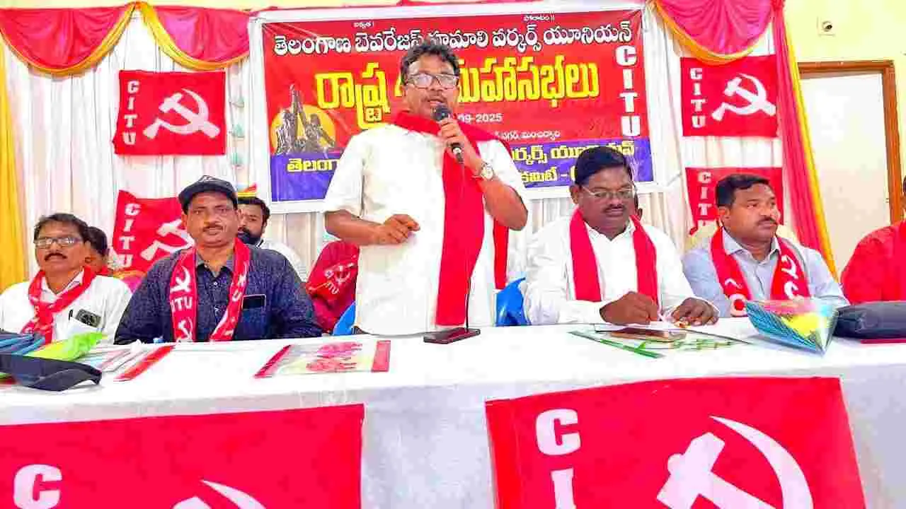 మంచిర్యాల కలెక్టరేట్, సెప్టెంబరు 7 (ఆంధ్రజ్యోతి) : బేవరేజెస్ హమాలీ కార్మికులు హక్కుల సాధన కోసం ఐక్య పోరాటాలు చేయాలని సీఐటీయూ రాష్ట్ర ప్రధాన కార్యదర్శి పాలడుగు భాస్కర్ అన్నారు. ఆదివారం జిల్లా కేంద్రంలోని బైపాస్రోడ్డులోని ఫంక్షన్హాలులో నిర్వహిం చిన హమాలీ కార్మికుల నాలుగో రాష్ట్ర మహాసభలకు ఆ యన హాజరై మాట్లాడారు. రాష్ట్ర వ్యాప్తంగా బేవేరెజెస్ గోదాముల్లో 2 వేల మందికి పైగా కార్మికులు పనిచే స్తు న్నారని , ప్రభుత్వానికి వారి ద్వారా కోట్ల రూపాయల ఆ దాయం సమకూరుతుందని అయినా వారిని శ్రమదో పిడికి గురి చేస్తుందన్నారు. ప్రైవేటు వ్యక్తులకు చెల్లిస్తు న్న డబ్బులతో సొంత గోదాములు నిర్వహించుకునే వీ లున్నప్పటికీ ప్రభుత్వం ఆ పనిచేయకపోవడం వి డ్డూ రంగా ఉందన్నారు. ఫలితంగా గోదాములు స్ధానికత పేరుతో బయట వ్యక్తులకు పోటీ పెరిగి హమాలీల పనులకు భద్రత కరువైందన్నారు. కంపెనీల నుంచి వచ్చిన వాహనాల్లో మద్యాన్ని బయట వ్యక్తులు దొంగత నాలు చేస్తున్నారని, అయినప్పటికీ ప్రభుత్వం చర్యలు చేపట్టకపోవడం సరైంది కాదన్నారు. హమాలీలకు మౌ లిక సదుపాయలు కల్పించడంలో ప్రభుత్వం విఫల మైం దన్నారు. లక్షల రూపాయలు ప్రైవేటు వ్యక్తుల గోదా ములు లీజుకు తీసుకుని ప్రభుత్వం నిధులను దుర్విని యోగం చేస్తుందన్నారు. అనంతరం గౌరవధ్యక్షుడు రా ములు మాట్లాడుతూ ఐకమత్యంతో హక్కులను సాధిం చుకోవాలని పిలుపునిచ్చారు. సంక్షేమ పథకాలకు కార్మి కులకు వర్తింపజేయాలని డిమాండ్ చేశారు. అంతకు ముందు ఐబీ చౌరస్తాలోని అంబేద్కర్ విగ్రహానికి పూల మాలలు వేసి నివాళులర్పించారు. ర్యాలీగా ఫంక్షన్హా లుకు చేరుకుని జెండా ఎగురవేశారు. ఈ కార్యక్రమం లో జిల్లా కార్యదర్శి రంజిత్కుమార్, గోమాస పకాష్, దా సరి రాజేశ్వరి, దేవదాస్ పాల్గొన్నారు.