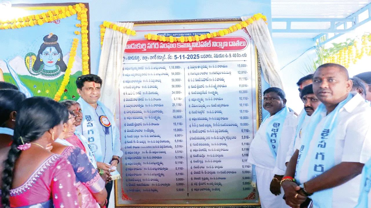 నాగర్కర్నూల్ మండలం తూడుకుర్తి గ్రామంలో సగర సంఘం నూతన కమ్యూనిటీ హాల్ను ఎమ్మెల్యే కూచకుళ్ల రాజేశ్ రెడ్డి బుధవారం ప్రారంభించారు.