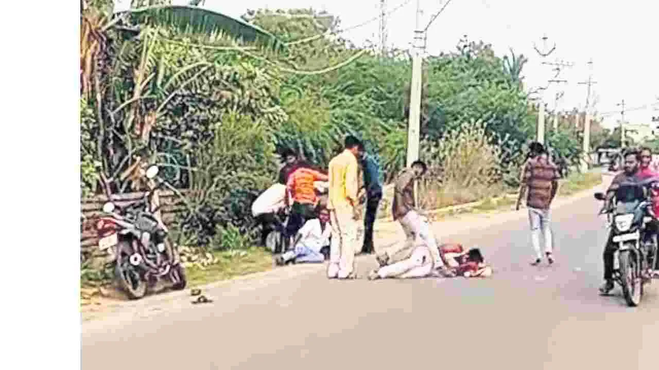 నేరేడుచర్ల, జూన్22 (ఆంధ్రజ్యోతి): వైన్షాపులో వివాదం తలెత్తడంతో మద్యం మత్తులో పరస్పరం దాడులకు పాల్పడ్డారు. అంతటితో ఆగకుండా బయటకు వచ్చి రహదారిపై వీరంగం సృష్టించారు. వీడియోలు తీసిన కొం దరు సోషల్ మీడియాలో పెట్టారు. పోలీసులు వచ్చినా దాడులు ఆగలేదు. పోలీసులు ప్రేక్షక పాత్ర వహించాల్సి వచ్చింది. సినిమా తరహాలో జరిగిన ఈ సంఘటన సూర్యాపేట జిల్లా నేరేడుచర్ల పట్టణంలోని రామాపురం రోడ్డులోని వైన్షాపు వద్ద ఆదివారం జరిగింది. వివరాలు ఇలా ఉన్నాయి. రామాపురం రోడ్డులో పెంచికల్దిన్న గ్రామానికి చెందిన ఇద్దరు యువకులు, నేరేడుచర్లకు చెందిన నలుగురు యువకులు పక్కపక్క టేబుళ్లలోనే కూ ర్చుని మద్యం తాగుతున్నారు. నేరేడుచర్లకు చెందిన ఓ యువకుడు వైన్స్ నుంచి బయటకు వస్తున్న క్రమంలో ద్విచక్ర వాహనానికి తగలడంతో వాహనం కింద పడింది. గమనించిన పెంచికల్దిన్నకు చెందిన యువకుడు అతనిపై దాడి చేసి గాయపర్చడంతో ఇరువర్గాల మధ్య గొడవ ప్రారంభ మైంది. పెంచికల్దిన్న యువకులు అక్కడున్న నలుగురిపై దాడి చేశారు. నేరేడుచర్లకు చెందిన నలుగురు యువకులు స్నేహితులకు సెల్ద్వారా సమాచారం ఇచ్చారు. అక్కడికి చేరుకున్న స్నేహితులు పెంచికల్దిన్న యువకులపై దాడి చేశారు. రామాపురం రోడ్డులో ఎవరు ఎవరిపై దాడి చేస్తున్నారో అర్థం కాలేదు. ఇరువర్గాలు కొట్టుకుంటుండగా జనం భారీగా పోగయ్యారు. సమాచారం తెలుసుకున్న పోలీసులు అక్కడికి చేరుకున్నారు. అయినా వారిని ఎవరూ ఆపలేక పోయారు. గరిడే పల్లి నుంచి అదనంగా పోలీసులు వచ్చి గొడవను అడ్డుకున్నారు. అప్పటికే ఇరువర్గాల వారికి గా యాలయ్యాయి. ఇరువర్గాల వారు ఒకరిపై ఒకరు ఫిర్యాదు చేసుకున్నట్లు తెలిసింది. గాయపడిని వారిని చికిత్స నిమిత్తం హుజూర్నగర్ ప్రభుత్వాసుపత్రికి తరలించారు. ఇరువర్గాలు ఫిర్యాదు చేసుకున్నాయని, విచారణ చేసి కేసులు నమోదు చేస్తామని ఎస్ఐ రవీందర్ తెలిపారు.