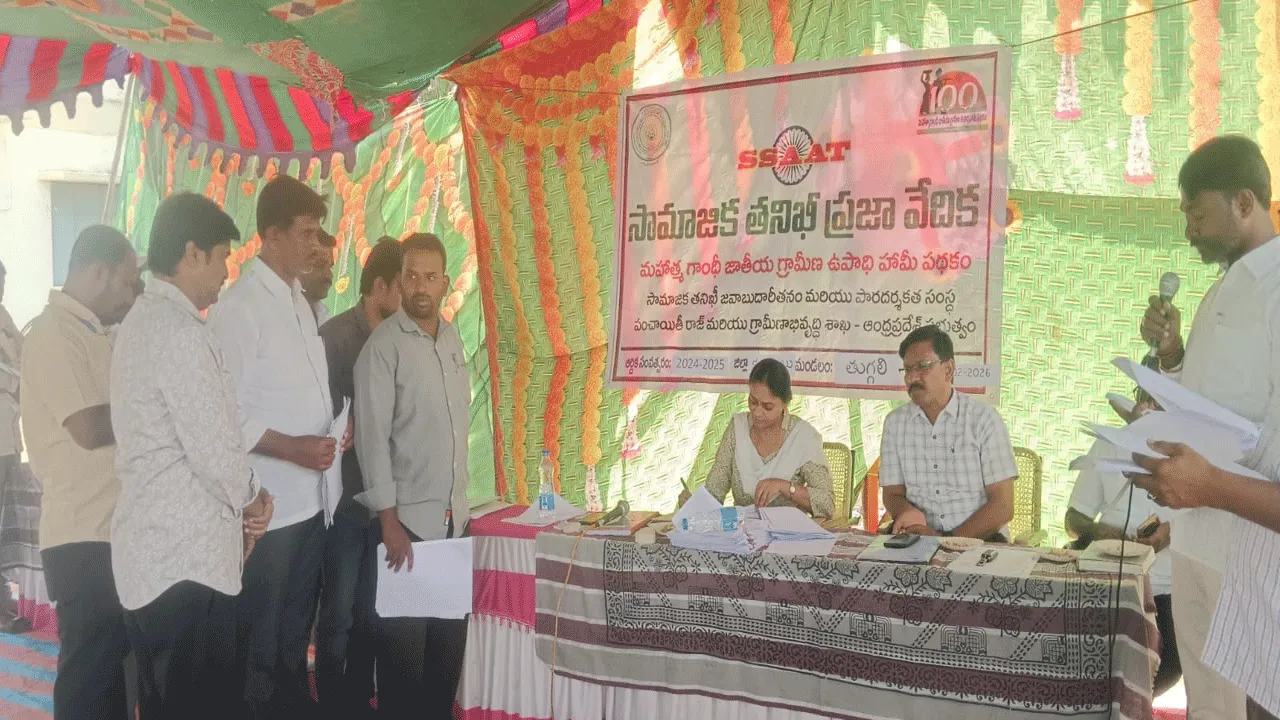 తుగ్గలి, ఫిబ్రవరి 27 (ఆంధ్రజ్యోతి): జాతీయ ఉపాధి హామీ పథకంలో అవినీతికి పాల్పడితే చర్యలు తప్పవని, రికవరీ కట్టకపోతే కేసులు నమోదు చేస్తామని డ్వామా పీడీ మాధవీలత హెచ్చరించారు. శుక్రవారం మండల కేంద్రంలోని ఏపీవో కార్యాలయం ఎదుట సామాజిక తనిఖీ ప్రజావేదిక నిర్వహించారు. ఏప్రిల్ 1, 2024 నుంచి మార్చి 31, 2025లో జరిగిన దాదాపు రూ.23 కోట్లతో ఉపాధి పనులు, హౌసింగ్, హార్టికల్చర్, సీసీ రోడ్ల నిర్మాణాలపై ఖర్చు చేశారు. ఇందులో రూ.1,38,864లు రికవరీ, రూ.18వేలు ఫెనాల్టీ విధించా రు. ఈ పనులను సామాజిక తనిఖీ బృందాలు నెల రోజుల పాటు తనిఖీలు చేసి పనులు పరిశీలించారు. ఆ పనుల్లో జరిగిన అవకతవకలపై బహిరంగ చర్చా వేదికలో చదివి వినిపించారు. పనులు చేయకుండా బిల్లులు కాజేసిన వారు, సక్రమంగా పనులు చేయని వారికి అధికారులు రికవరీలు, పెనాల్టీలు రాశారు. ఆ మొత్తాన్నంతా వారం లోపు చెల్లించాలని, లేకపోతే సంబంధిత అధికారులపై చర్యలు తీసుకుంటా మన్నారు. కూలీలందరికీ పనులు కల్పించాలని ఆదేశించారు. సమావేశంలో ఏపీడీ లక్ష్మన, ఏపీవోలు రామకృష్ణ, హేమసుందర్, ఈసీ రాజశేఖర్, టీఏలు, ఉపాది సిబ్బంది పాల్గొన్నారు.