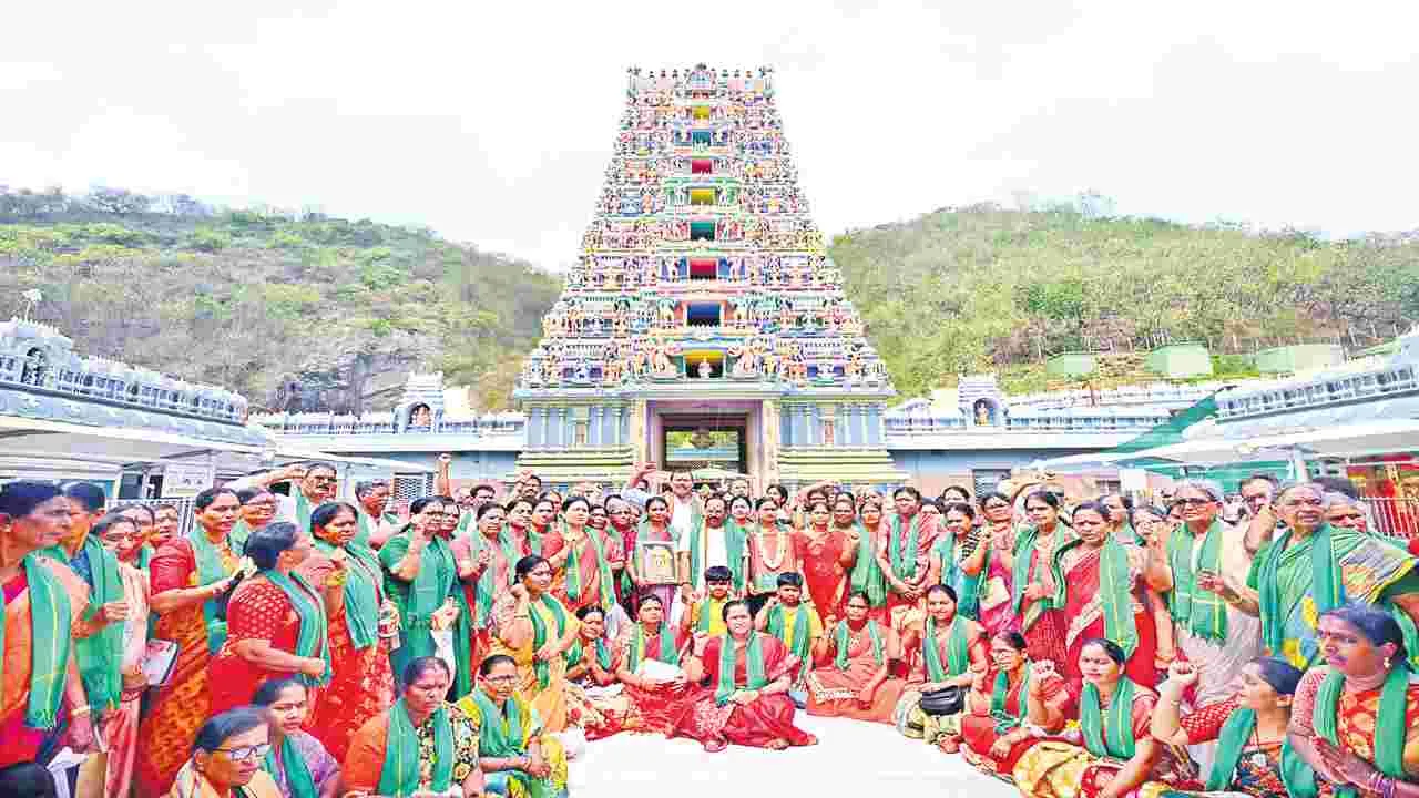 ‘వైసీపీ ఐదేళ్ల రాక్షస పాలనలో రాజధాని కోసం చేసిన పోరాటంలో మేం అనేక అవమానాలను ఎదుర్కొన్నాం. పోలీసు లాఠీ దెబ్బలూ తిన్నాం. ఆనాడు దుర్గమ్మను దర్శించుకోవటానికి వస్తే మమ్ములను అడ్డుకున్నారు. దుర్గమ్మ మా పోరాటాన్ని వెన్నంటి నడిపించింది. రాజధానికి పార్లమెంట్లో చట్టబద్దత లభించటంతో అమ్మవారిని దర్శించుకుని మొక్కులు చెల్లించుకున్నాం.’