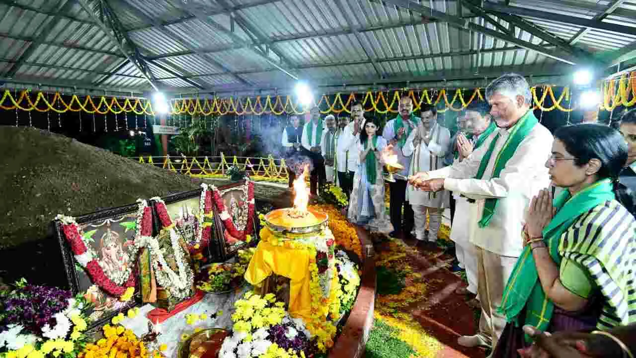 శంకుస్థాపన ప్రాంతంలో సీఎం ప్రత్యేక పూజలు