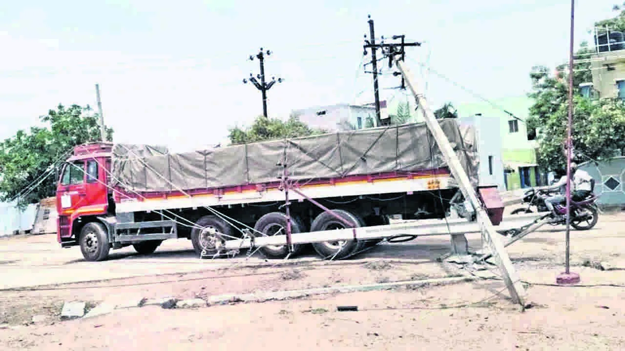 LORRY: విద్యుత స్తంభాన్ని ఢీకొన్న లారీ