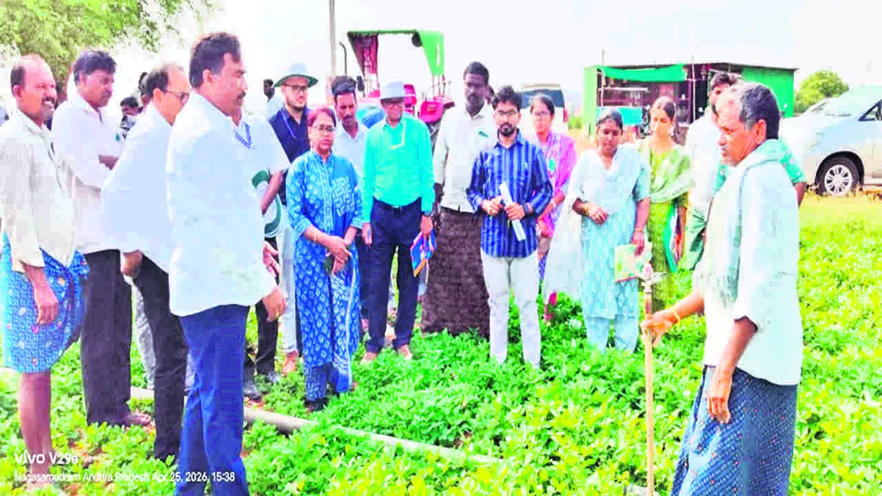 చెన్నేకొత్తపల్లి, ఏప్రిల్ 25(ఆంధ్రజ్యోతి): ప్రభుత్వం సీహెచసీ గ్రూపుల ద్వారా అందించిన వ్యవసాయ యాంత్రీకరణ పరికరాలను రైతులు సద్వినియోగం చేసుకోవాలని కేంద్రబృందం సభ్యులు సూచించారు. మండలంలోని ప్యాదిండి గ్రామాన్ని కేంద్ర బృందం సభ్యులు మెకనైజేషన అండ్టెక్నాలజీ జాయింట్ సెక్రటరీ ఎస్.రుక్మాణి, డిప్యూటీ కమిషనర్ సీఆర్ లోహి, డిపార్ట్మెంట్ ఆఫ్ అగ్రికల్చర్ ఫార్మర్ వెల్ఫేర్ మంగళపాండే శనివారం సందర్శించారు. వ్యవసాయ యాంత్రీకణ పరికరాలైన ట్రాక్టర్, ఐదు మడకలు, 42 బ్లేడుల రోటావేటర్, సబ్సిడీపై అందించిన డ్రోన్లను వారు పరిశీలించారు. రైతులతో వాటిని ఉయోగించే తీరును అడిగి తెలుసుకున్నారు. వేరుశనగ పంటను పరిశీలించి సాగు పద్ధతులు, దిగుబడులు, డ్రిప్, స్ర్పింక్లర్ల అవసరాన్ని రైతులను అడిగి తెలుసుకున్నారు. కార్యక్రమంలో జిల్లా వ్యవసాయ అధికారి కృష్ణయ్య, ఏడీఏ లక్ష్మానాయక్, ఏవో మురళీకృష్ణ, టీడీపీ మండల కన్వీనర్ ముత్యాల్రెడ్డి, రైతుసేవా కేంద్రం సిబ్బంది రామ్మోహనరెడ్డి, శ్రీలత, చందన, అనిత, నవ్య పాల్గొన్నారు.