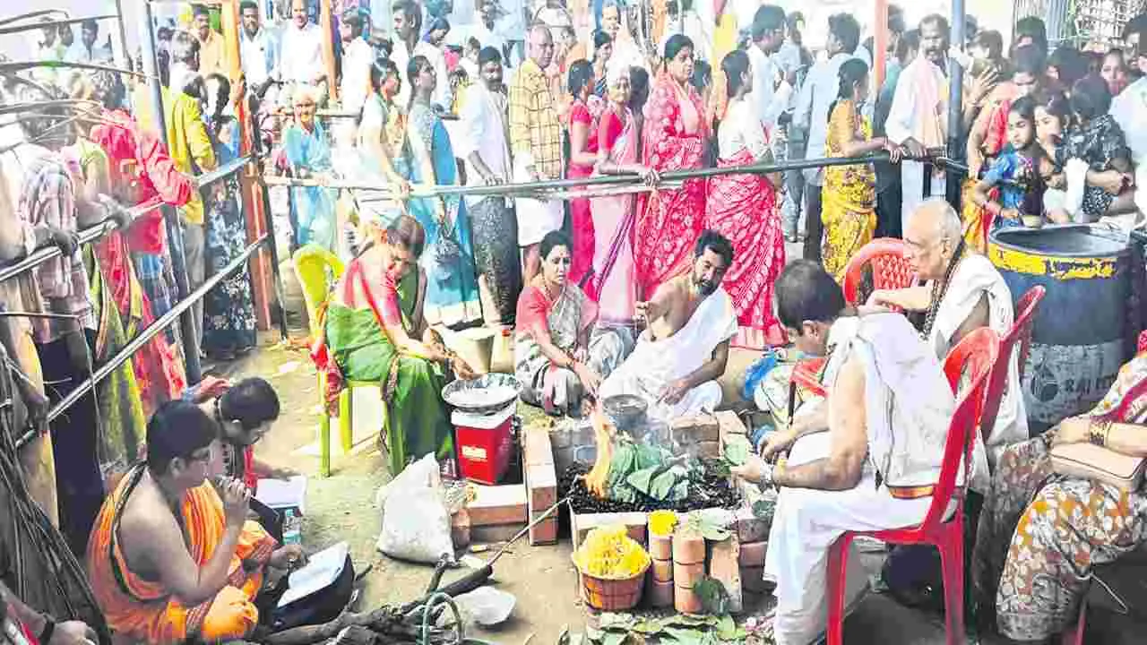 బెళుగుప్ప, ఫిబ్రవరి 8(ఆంధ్రజ్యోతి): మండలంలోని బూదిగుమ్మలో రెండు రోజుల పాటు నిర్వహిస్తున్న ఆంజనేయస్వామి ఉత్సవాలు ఆదివారంతో ముగిశాయి. ఆలయ సమీపంలోని పెన్నానదిలో భక్తులు మాఘస్నానం ఆచరించి ఒడ్డున అశ్వర్థ కట్ట వద్ద గంగపూజలు చేశారు. నది ఒడ్డున ఉన్న కాలువపల్లి వీరాంజనేయ కొట్టాల గ్రామస్థులు నదిలో గంగపూజ ఆంజనేయస్వామికి పూజలు చేశారు. వేదపండితులు సుందరకాండ హోమం నిర్వహించారు. ఎంఎంకేజీ సిప్లాన గ్రూప్ ఛైర్మన రాళ్లపల్లి అనంతయ్య అన్నప్రసాదం అందజేశారు. ఇందులో చిత్తూరు జిల్లా డీఎస్పీ టి సాయినాథ్, ఆలయ కమిటీ ఛైర్మన టి యర్రిస్వామి, ఆలయ ఛైర్మన శంకరప్ప పాల్గొన్నారు.