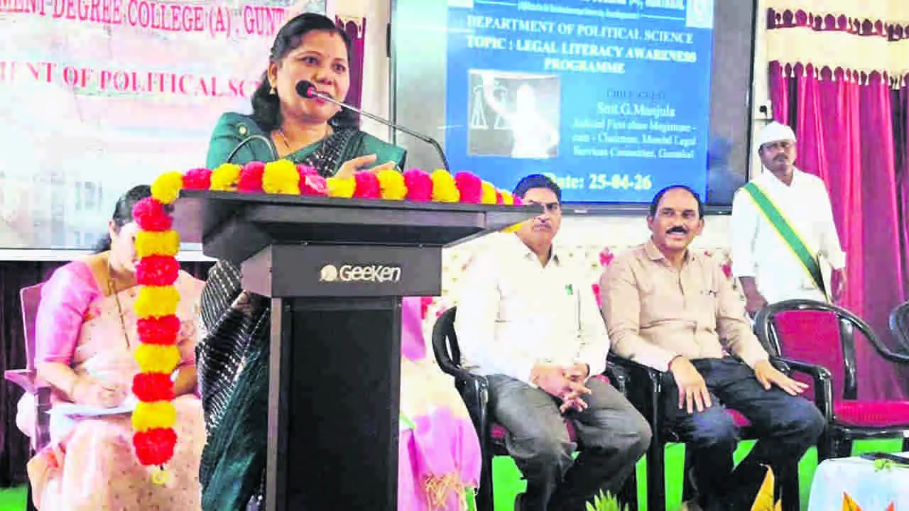 విద్యార్థులు చదు వుతో పాటు చట్టాలపై అవగాహన పెంచుకోవాలని గుంతకల్లు జ్యుడి షియల్ ఫస్ట్క్లాస్ కోర్టు న్యాయాధికారి జి. మంజుల పేర్కొన్నారు. స్ధాని క ఎస్కేపీ ప్రభుత్వ డిగ్రీ కళాశాలలో శనివారం లీగల్ లిటరసీపై అవగాహన కార్యక్రమాన్ని నిర్వహించారు.