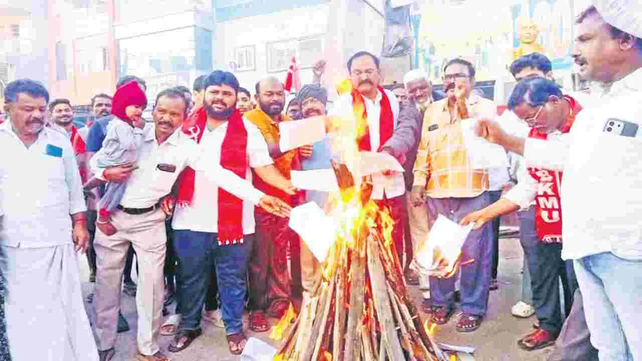 స్థానిక పొట్టిశ్రీరాములు విగ్రహం వద్ద పీపీపీ, వీబీజీ జీవో ప్రతులను సీపీఐ నాయకులు భోగి మంటల్లో బుధవారం దహనం చేశారు.