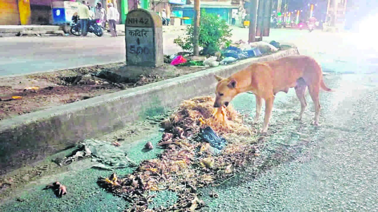 రోడ్లపై కోళ్ల వ్యర్థాలు