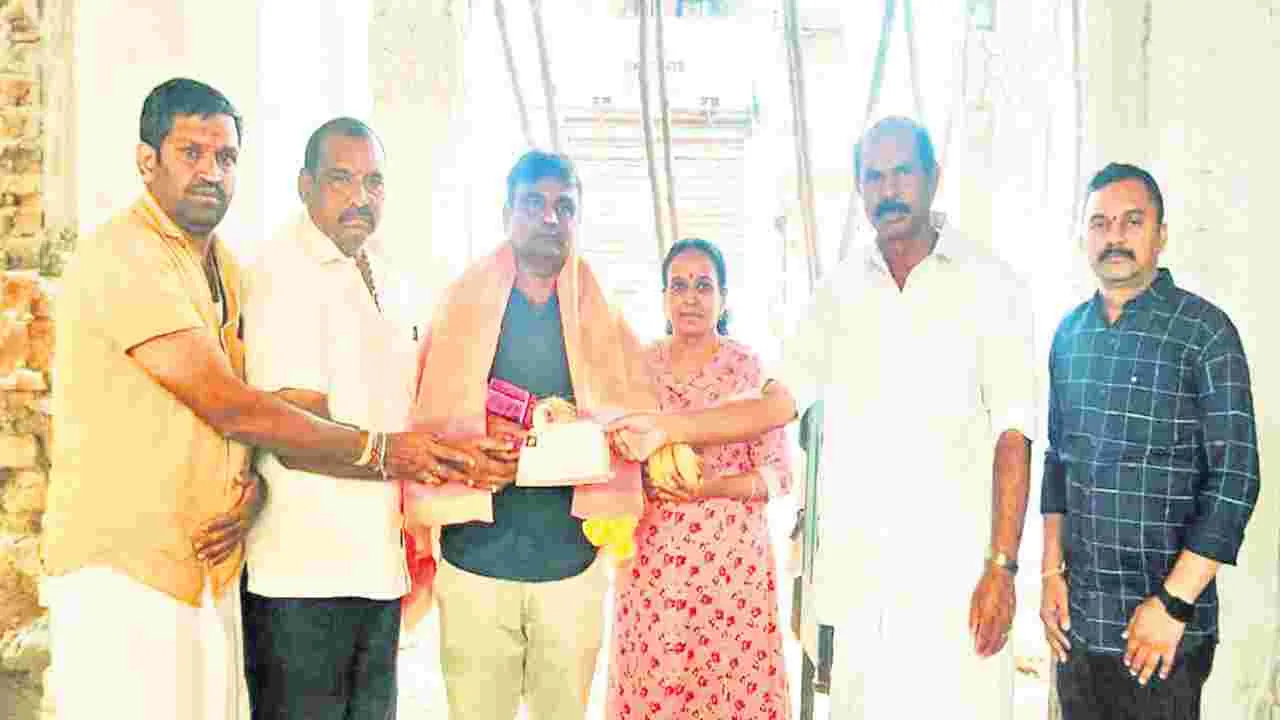 ధర్మవరం, మార్చి 1(ఆంధ్రజ్యోతి): స్థానిక యాదవ వీధిలోని వరసిద్ధి వినాయక ఆలయ పునర్నిర్మాణానికి పట్టణానికి చెందిన బాబుప్రసాద్ రూ.లక్ష విరాళంగా ఇచ్చారు. ఆదివారం దాత బాబుప్రసాద్, భార్య సరస్వతి ఆ నగదును ఆలయ కమిటీ సభ్యులకు అందజేశారు. దాతలను ఆలయ అర్చకులు సన్మానించారు.