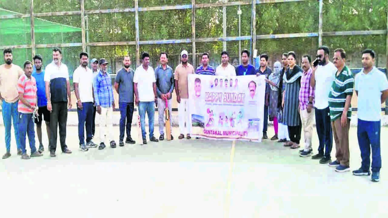 గుంతకల్లుటౌన, ఫిబ్రవరి 22(ఆంధ్రజ్యోతి): రాష్ట్ర ప్రభుత్వం ప్రవేశ పెట్టిన హ్యాపీ-సండే కార్యక్రమాన్ని పట్టణంలోని రైల్వే క్రీడా మై దానంలో ఆదివారం నిర్వహించారు. ఈ కార్యక్రమాన్ని మున్సిపల్ కమి షనర్ ఎం లక్ష్మీదేవి ప్రారంభించారు. ఈ సందర్భంగా కమిషనర్, ఇతర అధికారులు క్రికెట్, షటిల్, టెన్నిస్ ఆటలలో పాల్గొన్నారు. ఈ కార్యక్ర మంలో ఎంఈవో ఇంతియాజ్, రెవెన్యూ అధికారి జయరాం, డీఈలు, ఏఈలు, శానిటరీ ఉద్యోగులు, సచివాలయ ఉద్యోగులు, క్రీడాకారులు, మార్నింగ్ వాకర్స్, విద్యార్థులు పాల్గొన్నారు.