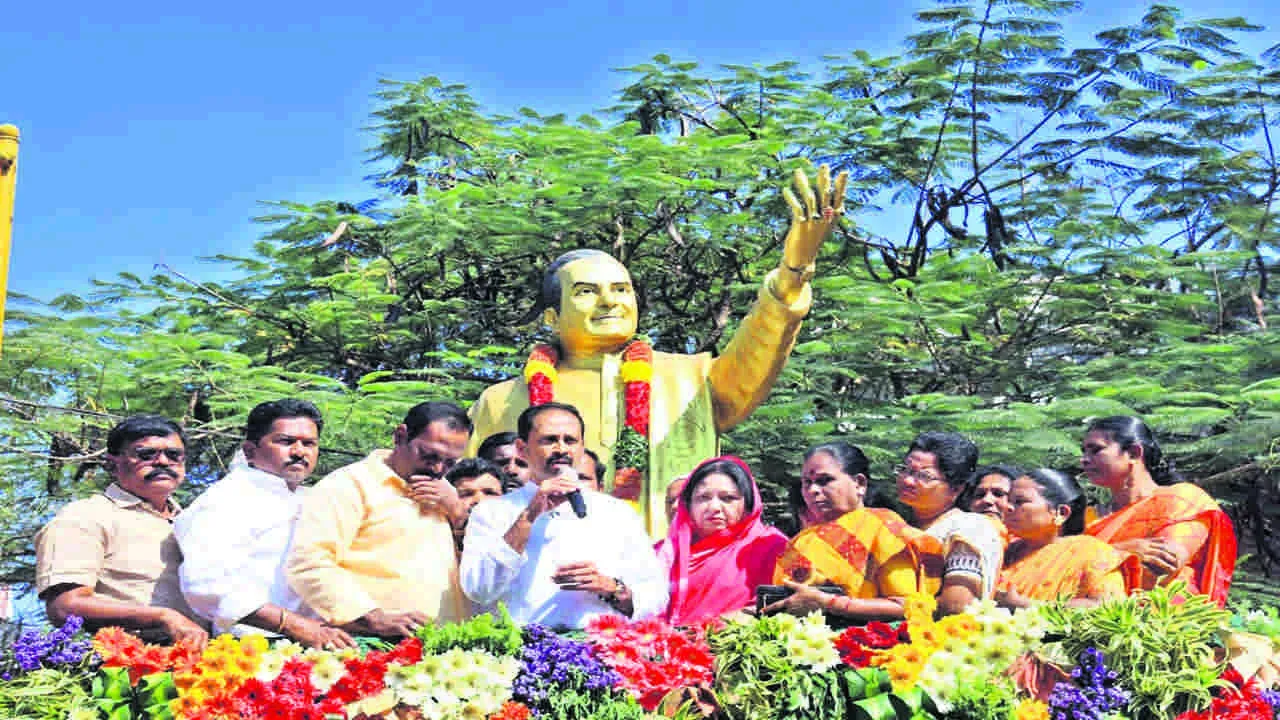కదిరి, జనవరి 18(ఆంధ్రజ్యోతి): దేశ రాజకీయాలలో ఒక సంచలనంగా మొదలైన ప్రస్థానం ఎవరిదైనా ఉందంటే.. ఆల్ టైమ్ రికార్డ్గా నిలిచిన మాజీ ముఖ్యమంత్రి ఎన్టీ రామారావుదేనని ఎమ్మెల్యే కందికుంట వెంకటప్రసాద్ పేర్కొన్నారు. ఎన్టీ రామారావు వర్ధంతిని ఆదివారం పట్టణంలో టీడీపీ శ్రేణుల ఆధ్వర్యంలో నిర్వహించారు. ముఖ్య అతిథిగా హాజరైన ఎమ్మెల్యే కందికుంట పట్టణంలోని ఎన్టీఆర్ విగ్రహా నికి పూలమాల వేసి ఘనంగా నివాళులు అర్పించారు. అనంతరం ఏర్పాటు చేసిన సమావేశంలో ఆయన మాట్లాడుతూ... పార్టీ స్థాపించిన తొమ్మిది నెలల్లో అధికారంలోకి రావడం చరిత్రాత్మకం అన్నారు. ఎన్నో సంక్షేమ పథకాలు, సేవల ద్వారా ఆయన తెలుగువారి గుండ్లెల్లో చిరస్థా యిగా నిలిచారని కొనియాడారు. రాజకీయ పార్టీలు సేవా కార్యక్రమాలుచేయడం అనేది టీడీపీ ఆవిర్భావం తర్వాతనే అన్నారు. ఆయన ఆశయాలు, సిద్ధాంతాలకు అనుగుణంగా పనిచేస్తామని ఎమ్మెల్యే స్పష్టం చేశారు. కార్యక్రమంలో టీడీపీ నాయకులు, కార్యకర్తలు పాల్గొన్నారు.