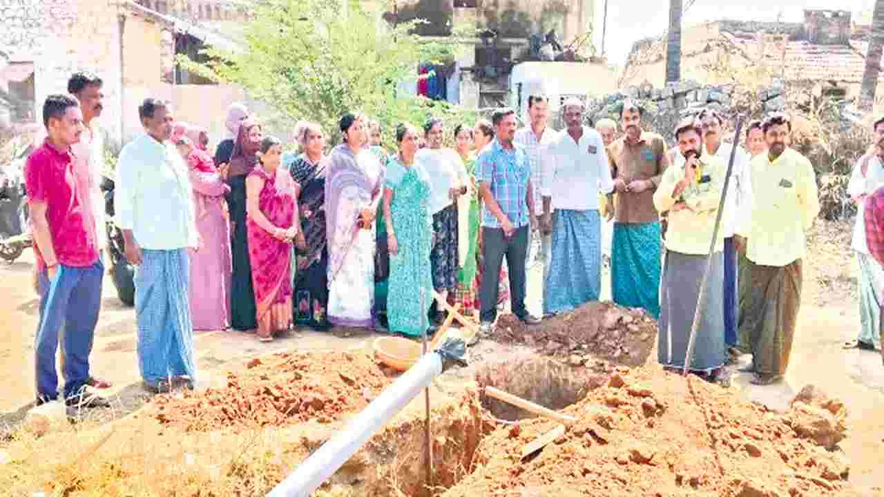 ఉరవకొండ, ఫిబ్రవరి 12(ఆంధ్రజ్యోతి): పట్టణంలోని కొలిమి లేఅవుట్ (జగనన్న కాలనీ)లో 450కు పైగా ఇళ్లు ఉన్నాయి. వైసీపీ హయాం లో జలజీవన మిషన క్రింద వైసీపీ నాయకులు తూతూ మంత్రంగా ఇంటింటికి కొళాయిలు ఏర్పాటు చేసి.. బిల్లులు తీసుకున్నారు. అయితే ఆ పైప్లైనకు ప్రధాన కనెక్షన ఇవ్వకపోవడంతో ఆ పనులు వృథా అయ్యాయి. ఏ ఒక్క ఇంటికీ చుక్కనీరు అందలేదు. ఆ కాలనీ ఏర్పడినప్పటి నుంచి నీటి సమస్య ఉందని, దీన్ని పరిష్కరించాలని ఆ కాలనీ వాసులు మంత్రి పయ్యావుల కేశవ్ను కోరారు. దీంతో ఆ కాలనీలో వైప్లైన ఏర్పాటుకు రూ.4.80 లక్షల మంజూరు చేయించారు. మొత్తం ఆ కాలనీలో 13 లైన్లు ఉండగా.. రూ. 4.80 లక్షలతో 8 లైన్లు వరకు పైప్లైన పనులు పూర్తి చేశారు. ఇక ఆ పైప్లైనకు ప్రధాన పైప్లైన కనెక్షన ఇచ్చి.. ఇంటింటికి కొళాయిలు ఏర్పాటు చేయాల్సి ఉంది. ప్రధాన కనెక్షన ఇచ్చేందుకు కాంట్రాక్టర్ గురువారం ప్రయత్నించగా.. ఆ కాలనీ వాసులే అడ్డుకున్నారు. కాలనీ మొత్తం పనులు పూర్తయిన తర్వాతే ప్రధాన కనెక్షన ఇవ్వాలని పంచాయతీ కార్యదర్శి మహ్మద్రఫీకి వారు తేల్చిచెప్పారు. ప్రస్తుతం ఈ కనెక్షన ఇస్తే.. దాదాపు 200 ఇళ్లకు నీరు లభిస్తుందని... నిధులు మంజూరు కాగానే మిగిలిన లైన్లకూ పైప్లైన వేస్తామని కాంట్రాక్టర్ చెప్పినా.. వారు వినలేదు. దీంతో చేసేదీమీలేక వారు వెనుతిరిగారు.