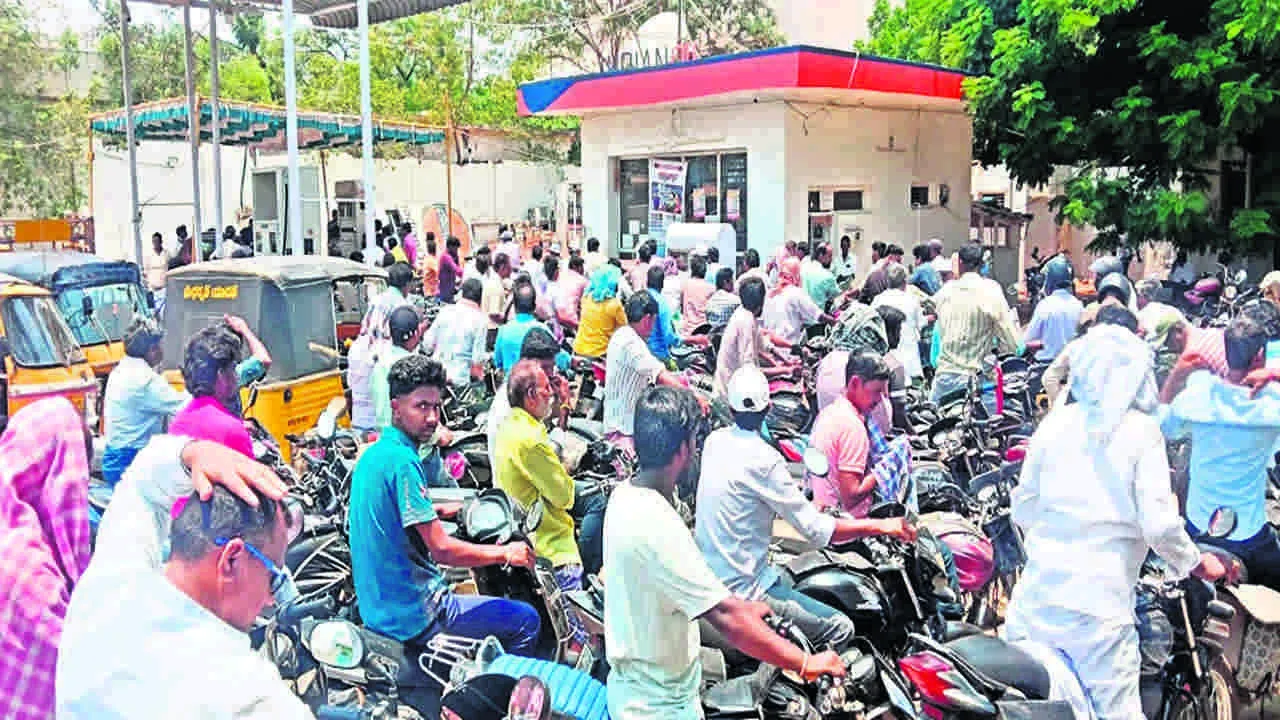 PETROL: పెట్రోల్ కోసం జనం బారులు