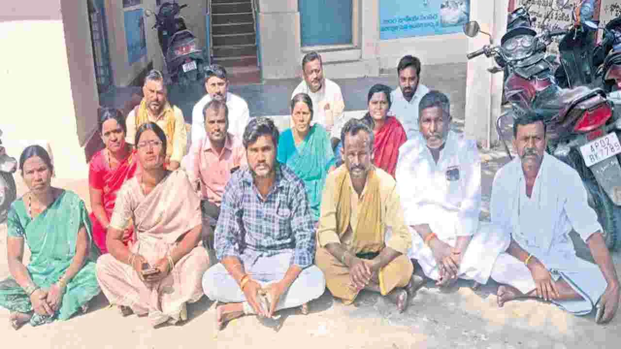 ఉరవకొండ, జనవరి 23(ఆంధ్రజ్యోతి): మూడు నెలల ఒక్కసారి నిర్వహించే సర్వసభ్య సమావేశానికి అధికారులు గైర్హాజర్ కావడంపై ఎంపీటీసీలు, సర్పంచులు శుక్రవారం నిరసన వ్యక్తం చేశారు. వజ్రకరూరు మండల సర్వసభ్య సమావేశాన్ని బహిస్కరించి.. ఎంపీడీవో కార్యాలయం వద్ద ఆందోళన చేపట్టారు. తమకు గౌరవ వేతనం ఇవ్వడం లేదని, అధికారుల దృష్టికి తీసుకెళ్లినా పట్టించుకోవడం లేదని అన్నారు. సమావేశానికి రావాలని ఎంపీడీవో సభ్యులను కోరగా.. వారు అక్కడి నుంచి వెళ్లిపోయారు. దీంతో సమావేశం వాయిదా పడింది. కాగా, తమకు వ్యతిరేకంగా వార్తలు రాస్తారా అంటూ వైసీపీ సర్పంచుల విలేకరులపై బెదింపులకు పాల్పడ్డారు.