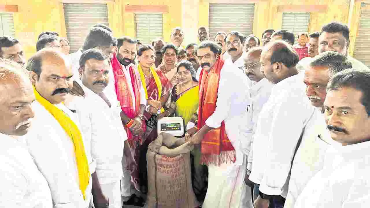 స్థానిక మార్కెట్ యార్డులో కందుల కొనుగోలు కేంద్రాన్ని ఎమ్మెల్యే గుమ్మనూరు జయరాం మంగళవారం ప్రారంభించారు.
