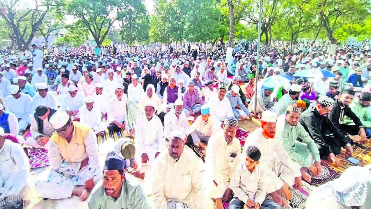 ముస్లింలు పవిత్ర రంజాన పండుగను పురస్కరించుకుని శనివారం భక్తిశ్రద్ధలతో ఈదుల్ఫితర్ వేడుకలను ఘనంగా నిర్వహించారు. నిర్ణ యించిన వేళకు సానిక ఈద్గాల వద్దకు భారీ ర్యాలీగా చేరుకున్నారు. ఈ సందర్భంగా ప్రభుత్వ ఖాజీలు నమాజ్ను చదివి వినిపించారు. రంజాన యొక్క ప్రాధాన్యాన్ని వివరించారు. తోటివారితో సోదర భావం, ప్రేమ, సహనం, ఐక్యతతో మెలగాలని బోధించారు. శాంతి సందేశంతో పాటు దేశాభివృద్ధి, శ్రేయస్సు, సౌభ్రాతృత్వం కోసం ప్రత్యేక ప్రార్థనలు చేశామని ముస్లిం మత పెద్దలు తెలిపారు. ప్రార్థనలు అనంతరం ముస్లింలు ఒకరినొకరు ఆలింగనం చేసుకుని శుభాకాంక్షలు తెలుపుకున్నారు.
