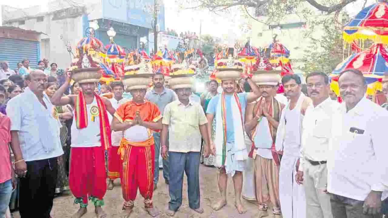 ఉరవకొండ, జనవరి 16(ఆంధ్రజ్యోతి): స్థానిక చౌడేశ్వరిదేవి పంచమ జ్యో తుల ఉత్సవాలను గురువారం వైభవంగా నిర్వహించారు. ఐదేళ్లకు ఒక్కసారి తొగట వీరక్షత్రియ, దేవాంగ ఆధ్వర్యంలో వేర్వేరుగా ఈ జ్యోతుల నిర్వహించడం ఆనవాయితీ. ఉదయం గంగా జలాన్ని ఊరేగింపుగా తీసుకెళ్లారు. సంప్రదాయ నృత్యాలు, డప్పులు వాయిద్యాలు ఆకట్టుకున్నా యి. అనంతరం అర్ధరాత్రి పంచమజ్యోతులను ఊరేగించారు.