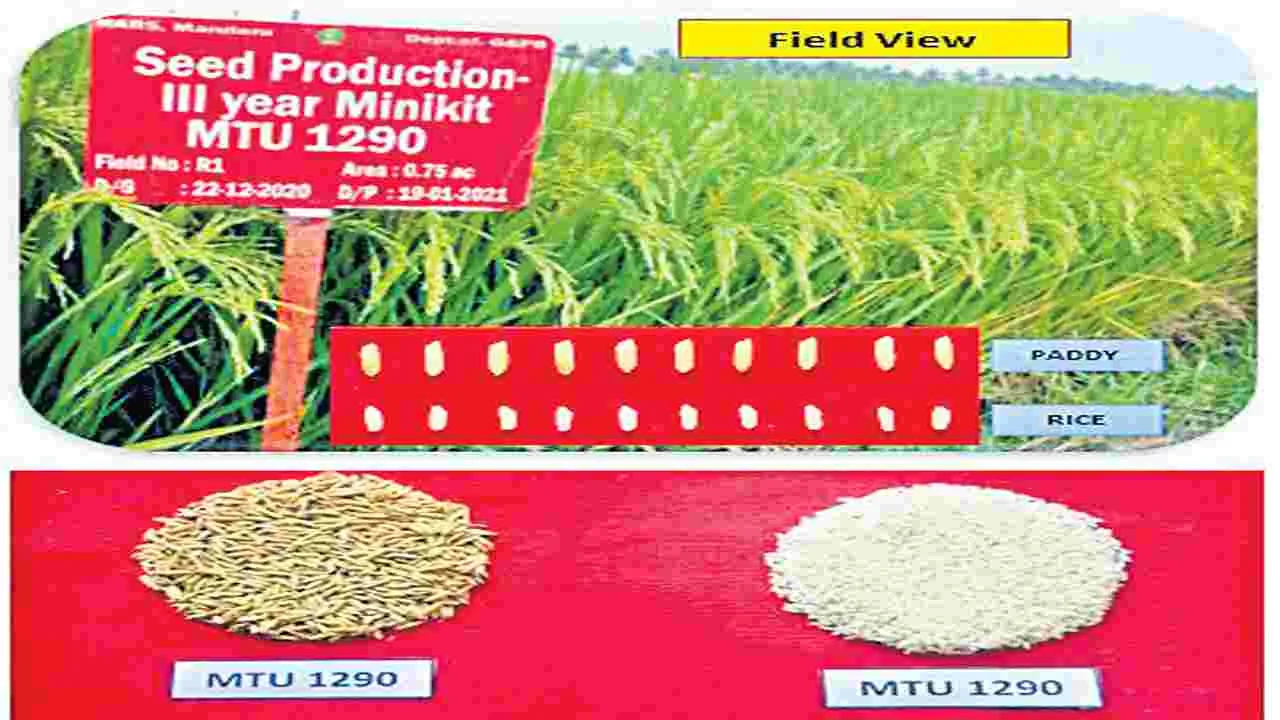 ఎంటీయూ 1290 వరి: మార్టేరు వరి పరిశోధన స్థానంలో రూపొందించారు. పంటకాలం 120రోజులు. ప్రతికూల పరిస్థితుల్లో హెక్టారుకు 5000-5500 కిలోల దిగుబడి వస్తుంది. సాధారణ పరిస్థితుల్లో 6500-7000కిలోలు ఉండవచ్చు.