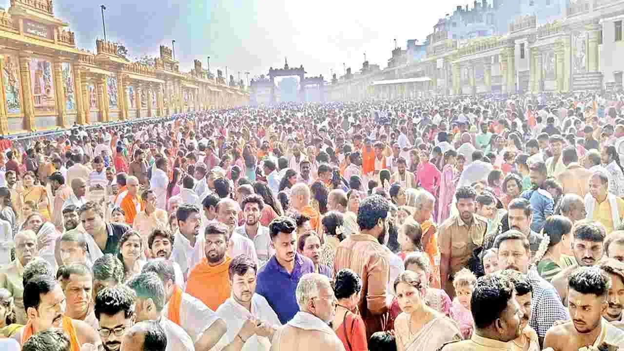 ధ్మాత్మిక క్షేత్రం మంత్రాలయంలోని శ్రీమఠం ఆదివారం భక్తులతో కిక్కిరిసింది. రాఘవేంద్ర స్వామిని దర్శించుకునేందుకు భక్తులు వేలాదిగా తరలివచ్చారు.