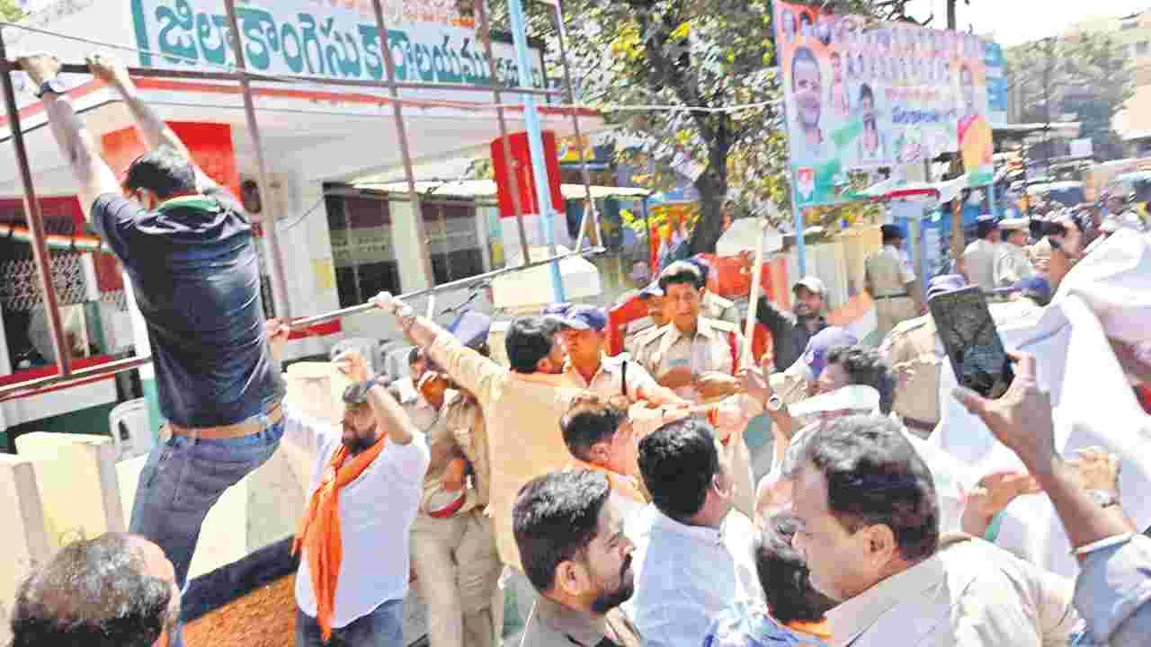 రాష్ట్రంలోని పలుచోట్ల కాంగ్రెస్ కార్యాలయాలపై దాడులు
