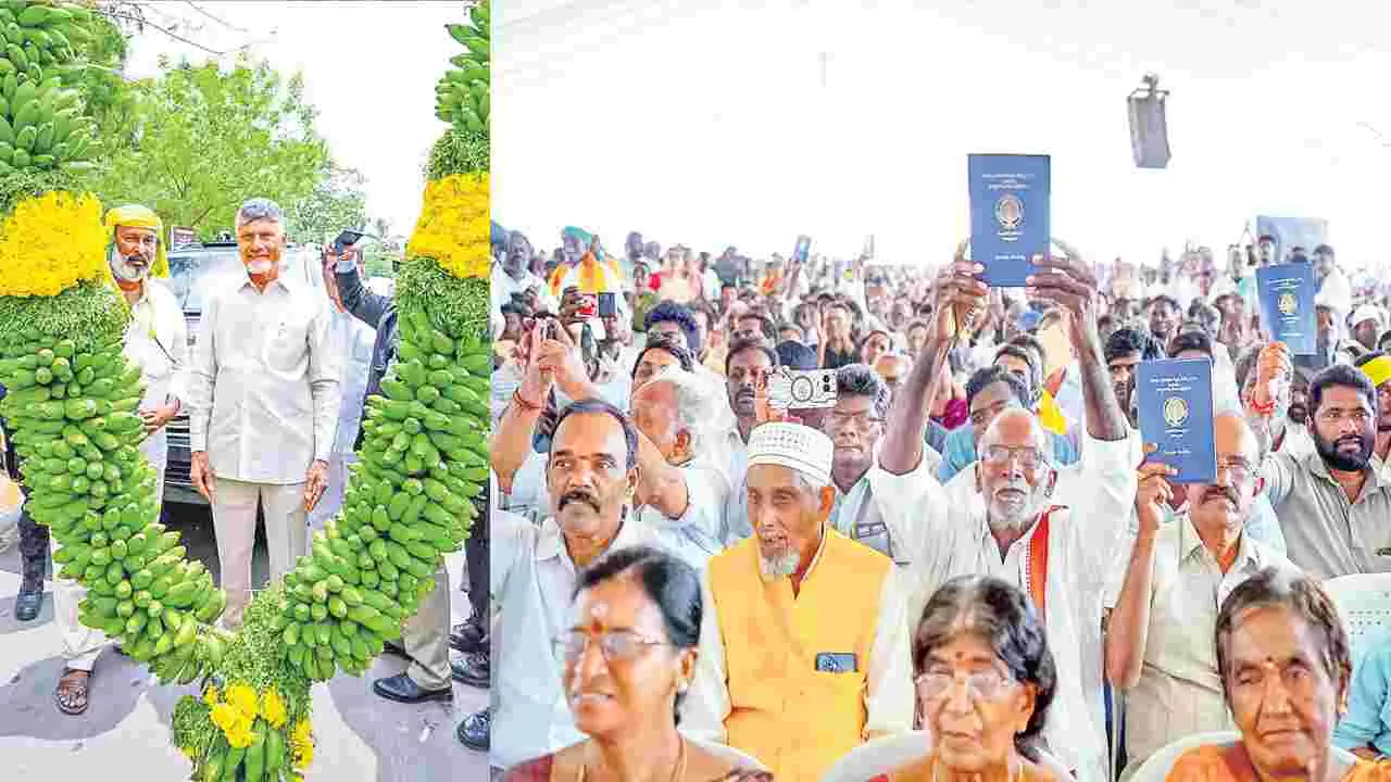 ‘‘నేను నాలుగోసారి సీఎంగా చేస్తున్నాను. కానీ రెవెన్యూలో ఎంత లోతుకు పోతే అన్ని గోతులు బయటపడుతున్నాయి. నాకే దిక్కు తెలియడం లేదు. ఓ వ్యక్తి చేసిన తప్పునకు వ్యవస్థలన్నీ గాడి తప్పాయి. ఇప్పుడు వాటన్నింటినీ సంస్కరించి ప్రజల భూమికి భద్రతతో కూడిన భరోసా ఇవ్వాలనే ఉద్దేశంతో స్వయంగా నేనే ప్రతి నెలా 9న గ్రామసభల ద్వారా పాసు పుస్తకాలిస్తున్నా. శాశ్వతంగా భూ సమస్యలు లేకుండా చూడాలన్నదే నా లక్ష్యం. ఈ ఆర్థిక సంవత్సరం ముగింపు కల్లా రీ సర్వేతో పాటు పీపీబీలను ప్రతి రైతుకూ అందిస్తాం. పాస్బుక్లకు మూడంచెల రక్షణ కల్పిస్తున్నాం. ఎవరూ తారుమారు చేయలేరు. ట్యాంపర్ చేసే అవకాశం లేదు. క్యూఆర్ కోడ్ను కూడా అందిస్తున్నాం. డిజిటల్ లాకర్ విధానాన్ని రైతులకు చేరువ చేస్తున్నాం..’’