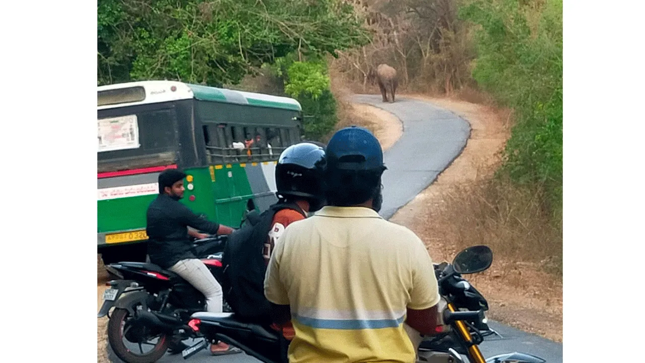 రోడ్డుపై ఒంటరి ఏనుగు హల్చల్