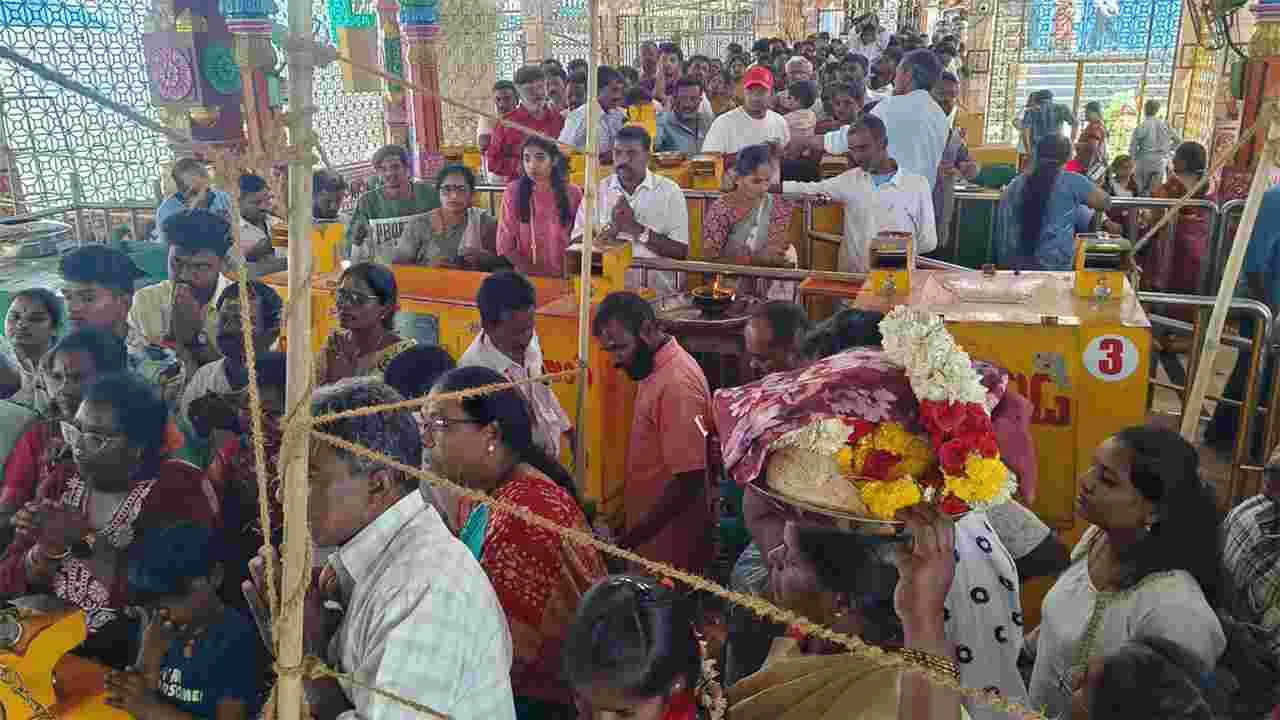 చౌడేపల్లె, మార్చి15(ఆంధ్రజ్యోతి): ప్రముఖ పుణ్యక్షేత్రం బోయకొండ ఆదివారం భక్తులతో కిటికిటలాడింది. వేకువజామునే ఆలయ అర్చకులు అమ్మవారిని సుప్రభాత సేవతో మేల్కొలిపి, పంచామృతాలతో అభిషేకించారు. అనంతరం స్వర్ణాభరణాలతో, పూలతో అలంకరించి, ధూపదీప నైవేద్యాలు సమర్పించి, భక్తులకు దర్శనం కల్పించారు. ఉభయ తెలుగు రాష్ర్టాల నుంచేగాక తమిళనాడు, కర్ణాటక నుంచి భక్తులు పెద్ద సంఖ్యలో వచ్చి అమ్మవారిని దర్శించుకుని, తీర్థప్రసాదాలు అందుకున్నారు. వివిధ సేవా టికెట్ల ద్వారా ఆలయానికి రూ.5.05లక్షల ఆదాయం చేకూరింది. ఈవో ఏకాంబరం ఏర్పాట్లను పర్యవేక్షించారు.
