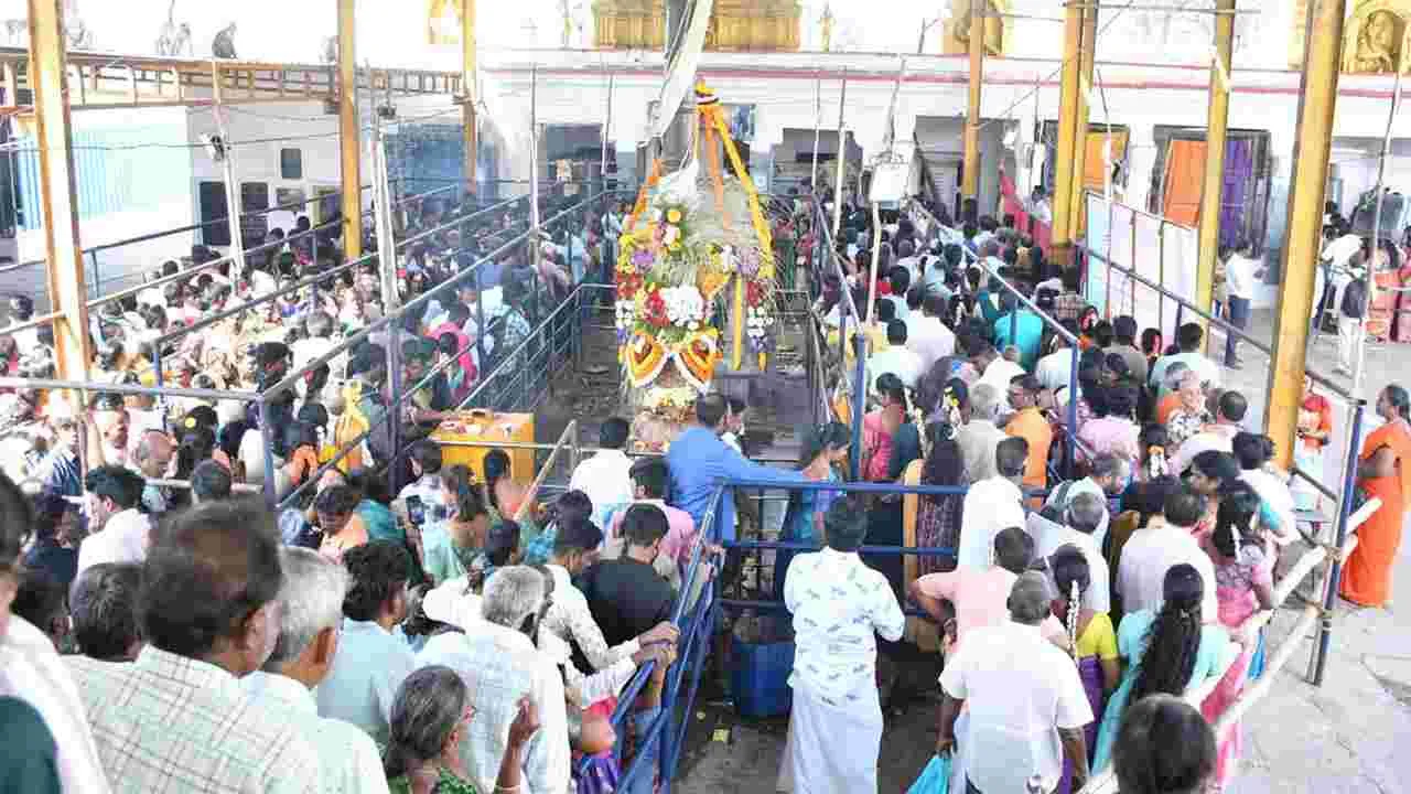 బంగారుపాళ్యం, ఫిబ్రవరి 15 (ఆంధ్రజ్యోతి): మహాశివరాత్రి సందర్భంగా ఆదివారం జిల్లాలోని శైవ క్షేత్రాలు శివ నామస్మరణతో మార్మోగాయి. ఉదయం నుంచే ఆలయాలకు చేరుకున్న భక్తులు స్వామి, అమ్మవార్లను దర్శించుకున్నారు. బంగారుపాళ్యం మండలం మొగిలిల స్వయంభు కామాక్షి సమేత మొగిలీశ్వరస్వామి ఆలయం భక్తులతో కిటకిటలాడింది. ఉదయం నుంచే భక్తులతో మొగిలి శివాలయం, అనుబంధ ఆలయం దేవరకొండ భక్తులతో నిండిపోయింది. కర్ణాటక, తమిళనాడు ప్రాంతాల భక్తులు శనివారం రాత్రే మొగిలికి చేరుకున్నారు. పలమనేరు, చిత్తూరు, బంగారుపాళ్యం పరిసర గ్రామాల నుంచీ భక్తులు తరలిరావడంతో మొగిలి కిటకిటలాడింది. మధ్యాహ్నం 3 గంటలకు కాణిపాకం వరసిద్ధి వినాయక స్వామి ఆలయం తరపున చిత్తూరు ఎంపీ దగ్గుమళ్ల ప్రసాదరావు, పూతలపట్టు ఎమ్మెల్యే మురళీమోహన్, బంగారుపాళ్యం మండల టీడీపీ అధ్యక్షుడు ఎన్పీ ధరణీప్రసాద్, కాణిపాకం ఆలయ ఈవో పెంచలకిషోర్ స్వామివారికి పట్టు వస్త్రాలు సమర్పించారు. వీరికి ఆలయ ప్రధాన అర్చకులు గంగాధరగురుకుల్, రెడ్డెప్పగురుకుల్ఆధ్వర్యంలో పూర్ణకుంభ స్వాగతం పలికారు. ఆలయ వంశపారంపర్య ధర్మకర్త ఎంబి విజయకుమార్, ఈవో మునిరాజ పాల్గొన్నారు. చిత్తూరు ట్రైనీ కలెక్టర్ నరేంద్రపడేల్, ఆర్డీవో శ్రీనివాసులు తమ కుటుంబీకులతో స్వామిని దర్శించుకున్నారు. కొండేటివాండ్లవూరుకు చెందిన పారిశ్రామికవేత్త సుకుమార్ శనివారం రాత్రి నుంచి సుమారు 20 వేల మందికి అన్నవితరణ చేశారు. కళ్యాణ్ అభయ్ ట్రస్టు నిర్వాహకులు శీతలపానీయాలు,ఐ్సక్రీమ్లు అందజేశారు. ఎన్ఆర్ఐ కళ్యాణ్ పోలీసులకు డ్రోన్ను అందించారు. ఈ డ్రోన్ను సీఐ శ్రీనివాసులు ఆధ్వర్యంలో వినియోగించి రద్దీని పర్యవేక్షించారు. కాగా, రాత్రి 12 గంటలకు లింగోద్భవ అభిషేకం జరిగాక భక్తులను దర్శనానికి అనుమతించారు. అనంతరం స్వామి, అమ్మవార్ల ఉత్సవర్లను వృషభవాహనంపై ఊరేగించారు. మాజీ జమీందార్ కుటుంబీకులు ఉభయదారులుగా వ్యవహరించారు.