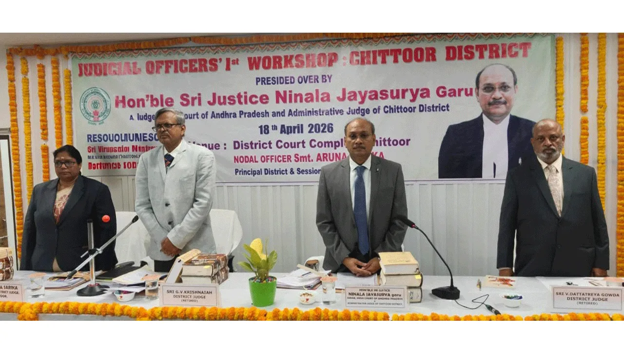 చిత్తూరు లీగల్, ఏప్రిల్ 18 (ఆంధ్రజ్యోతి): ‘పాత.. కొత్త చట్టాల మధ్య తేడాలను గ్రహించి నైపుణ్యాలను పెంచుకోవాలి. కొత్త చట్టాలపై అవగాహన తెచ్చుకోవాలి’ అని ఉమ్మడి చిత్తూరు జిల్లా న్యాయాధికారులకు ఏపీ హైకోర్టు న్యాయయూర్తి, జిల్లా పరిపాలన న్యాయమూర్తి జస్టిస్ జయసూర్య సూచించారు. చిత్తూరులోని జిల్లా కోర్టు సముదాయంలో శనివారం ఉమ్మడి జిల్లా పరిధిలోని న్యాయమూర్తులకు నిర్వహించిన వర్క్షా్పలో ఆయన మాట్లాడారు. నూతన క్రిమినల్ చట్టాల అమలు నేపథ్యంలో న్యాయమూర్తులు ఎదుర్కొనే సందిగ్ధాలను తొలగించేందుకు ఈ వర్క్షాపు ఉపయోగపడుతుందన్నారు. పాత, కొత్త చట్టాల మధ్య తేడాలను లోతుగా అధ్యయనం చేసి, వాటిని నిత్య న్యాయ కార్యక్రమాల్లో సరైన విధంగా అమలు చేయాలన్నారు. కొత్తగా నియమితులైన న్యాయాధికారులు ఈ మార్పులను అర్థం చేసుకుని, ఏ చట్టాన్ని ఎప్పుడు అమలు చేయాలో స్పష్టత పొందాలని సూచించారు. ఈ వర్క్షాప్ ద్వారా అనుభవజ్ఞులైన న్యాయమూర్తులతో పరస్పర చర్చలు జరిపి, సందేహాలను నివృత్తి చేసుకోవాలని కోరారు. ‘చట్టాలపై స్పష్టమైన అవగాహనతో పాటు, వాస్తవ పరిస్థితులను పరిగణనలోకి తీసుకుని నిర్ణయాలు తీసుకోవాలి. భయపడకుండా, ఆలోచనాత్మకంగా తీర్పులివ్వాలి. తుదినిర్ణయం ఉన్నత న్యాయస్థానాలదే అయినప్పటికీ, ప్రతి న్యాయాధికారి తన స్థాయిలో న్యాయబద్ధమైన నిర్ణయాలు ఇవ్వడం ముఖ్యం. న్యాయాధికారుల నైపుణ్యాభివృద్ధికి వర్క్షా్పలు వేదికలు’ అని జస్టిస్ జయసూర్య వివరించారు. కొత్త చట్టాలపై జిల్లా ప్రధాన న్యాయమూర్తి అరుణ సారిక అవగాహన కల్పించారు. ఈ కార్యక్రమంలో న్యాయమూర్తులు, విశ్రాంత జిల్లా న్యాయమూర్తి విరూపాక్ష దత్తాత్రేయ, అన్నయ్య రీసోర్సుపర్సన్లుగా పాల్గొన్నారు. కాగా, తొలుత జిల్లా కోర్టు వద్దకు వచ్చిన జస్టిస్ జయసూర్యకు పోలీసులు గౌరవ వందనం చేశారు. న్యాయమూర్తులు స్వాగతం పలికారు.