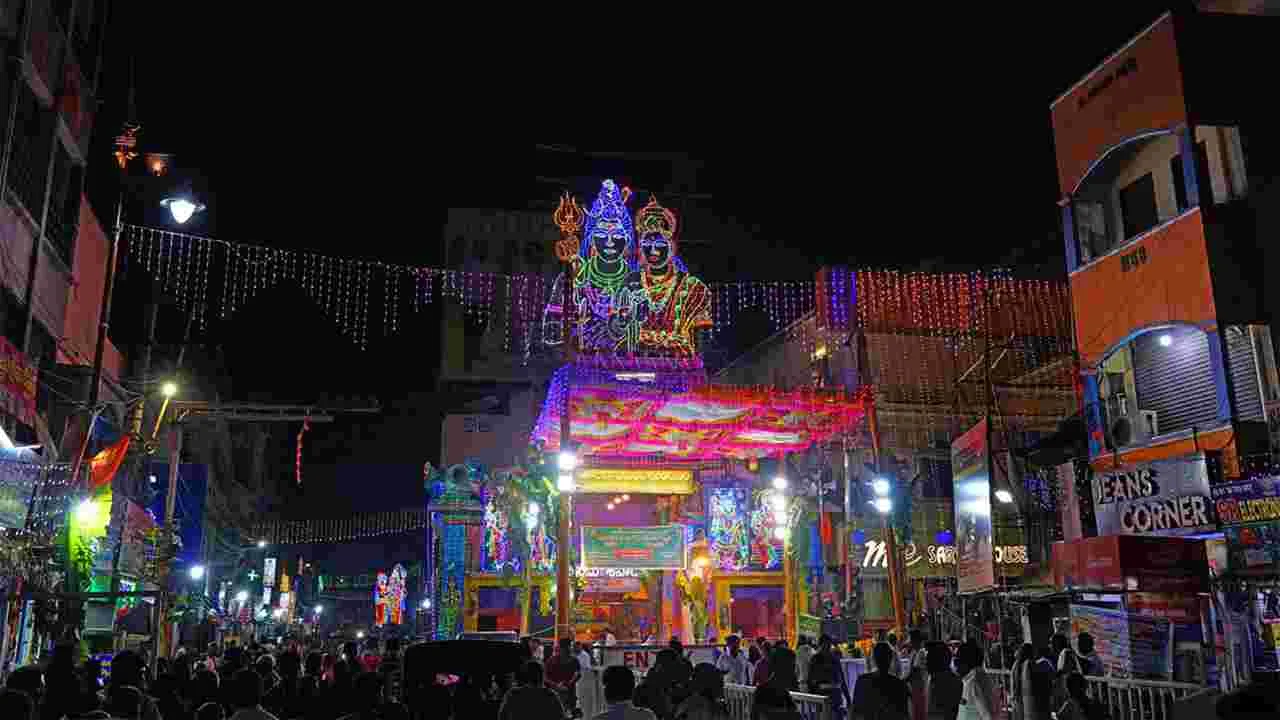 శ్రీకాళహస్తి, ఫిబ్రవరి 17(ఆంధ్రజ్యోతి): శ్రీకాళహస్తీశ్వరుడి మహాశివరాత్రి ఉత్సవాల్లో బుధవారం తెల్లవారు జామున జరిగే ఆదిదంపతుల కళ్యాణోత్సవానికి మంగళవారం రాత్రి నుంచే సంబరం ప్రారంభమైంది. శ్రీకాళహస్తి పట్టణంలోని కైకాలవారి పెండ్లిమండపాన్ని సర్వాంగ సుందరంగా అలంకరించారు. రంగురంగుల రంగవల్లులను తీర్చిదిద్దారు. నెహ్రూవీధిలో, నగరివీధిలో భక్తజనులు, పెళ్లిబృందాలు విడిది చేయడానికి బారికేడ్లను ఏర్పాటు చేశారు. ఆదిదంపతుల కళ్యాణ సమయాన బ్యాలవివాహాలు జరగకుండా గట్టి నిఘా పెట్టారు. పట్టణంలోకి ప్రవేశించే అన్ని దారుల్లో చెక్పోస్టులను ఏర్పాటు చేశారు. ఆ చెక్పోస్టుల వద్ద పోలీసులు, ఐసీడీఎస్, రెవెన్యూ తదితర శాఖల అధికారులు, స్వచ్ఛంద సంస్థల సభ్యులు మకాం వేశారు. పట్టణంలోకి వచ్చే పెళ్లి బృందాలను పరిశీలించి మరీ పంపుతున్నారు. కాగా ఆదిదేవుడి పెళ్లికి జనం తండోపతండాలుగా తరలి వచ్చారు. నాలుగు మాడవీధులు జనంతో కిక్కిరిసిపోయాయి. సాయంత్రం వరకు పలుచగా కనిపించిన వీధులు రాత్రికి జనంతో నిండిపోయాయి. బుధవారం వేకువజామున 3 గంటల ప్రాంతంలో కల్యాణం నిర్వహించాలని ఆలయ పండితులు ముహూర్తం నిర్ణయించారు. టీటీడీ సమర్పించిన పట్టువస్త్రాలను ధరించి శ్రీకాళహస్తీశ్వరుడు గజవాహనంపై... జ్ఞానప్రసూనాంబదేవి సింహవాహనం అధిరోహించి పెండ్లిమండపానికి రాత్రి 11గంటల ప్రాంతంలో తరలివచ్చారు. మంగళవాయిద్యాలు, మేళతాళాలు మోగుతుండగా... పరివారం ముందు నడుస్తుండగా స్వామి అమ్మవార్లు పెండ్లిమండపం వద్దకు చేరుకున్నారు.పార్వతీ పరమేశ్వరుల కల్యాణఘడియలో వివాహం చేసుకునేందుకు పలు జంటలు తరలివచ్చాయి.