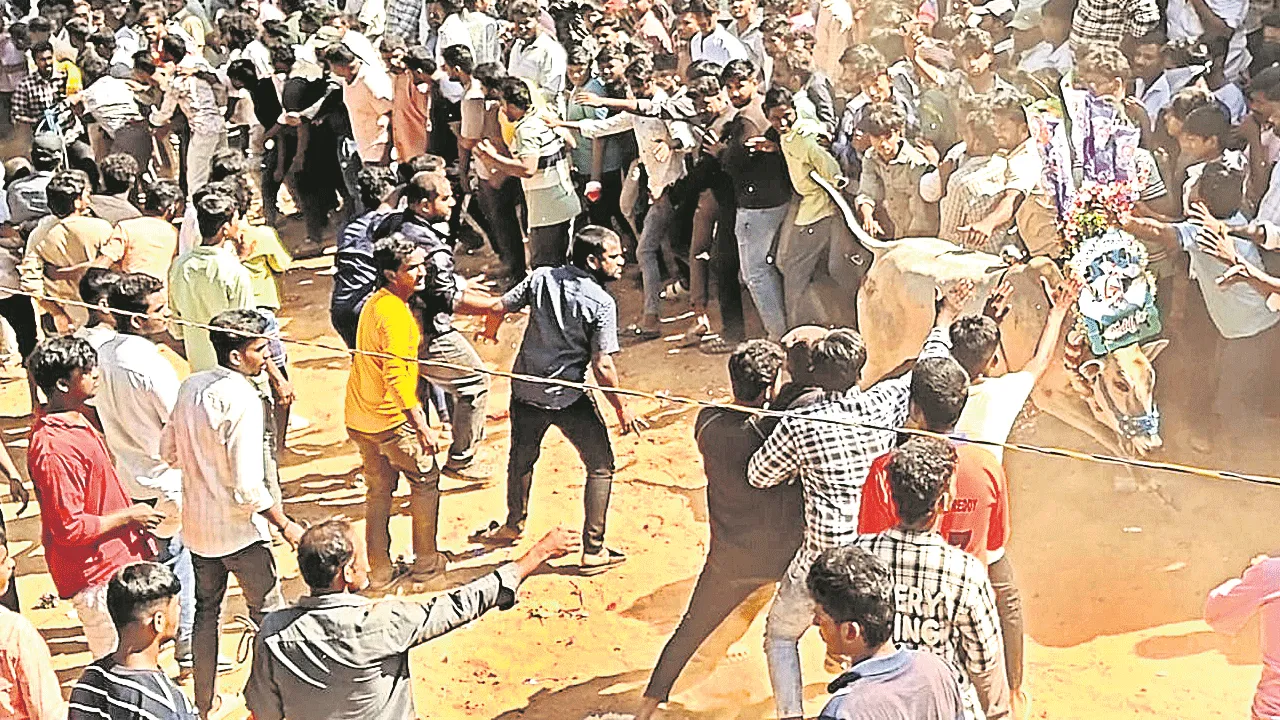రామచంద్రాపురం, జనవరి 14(ఆంధ్రజ్యోతి): సంక్రాంతి సంబరాల్లో భాగంగా బుధవారం రామచంద్రాపురం మండలం అనుపల్లెలో జల్లికట్టు నిర్వహించారు. ఈ జల్లికట్టుకు వారం నుంచే రైతులు తమ కోడెగిత్తలకు కొమ్ములు చివ్వి సిద్ధం చేశారు. వాటికి విలువైన బహుమతులతో పాటు రాజకీయ నాయకుల ఫొటోలను కట్టి ఉదయం అల్లె వద్దకు తీసుకొచ్చారు. అక్కడ వాటివెనుక డప్పు కొట్టి బెదిరించడంతో అవి వీధుల్లోకి పరుగులు తీశాయి. వాటిని నిలువరించి బహుమతులు చేజిక్కుంచుకునేందుకు యువకులు పోటీ పడ్డారు. అందుకున్న బహుమతులతో యువకులు కేకలేశారు. వెదురుకుప్పం, వడమాలపేట, తిరుపతి రూరల్ మండలాలతో పాటు పరిసర గ్రామాల నుంచి వందలాదిమంది జల్లికట్టును తిలకించేందుకు రావడంతో అనుపల్లి జనసంద్రమైంది.