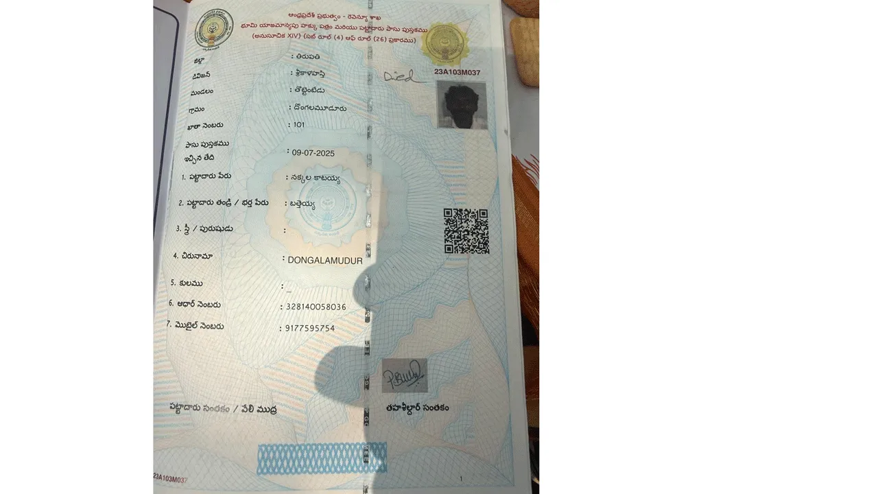 గుర్తు తెలియని వ్యక్తి ఫొటోతో పాసుపుస్తకం