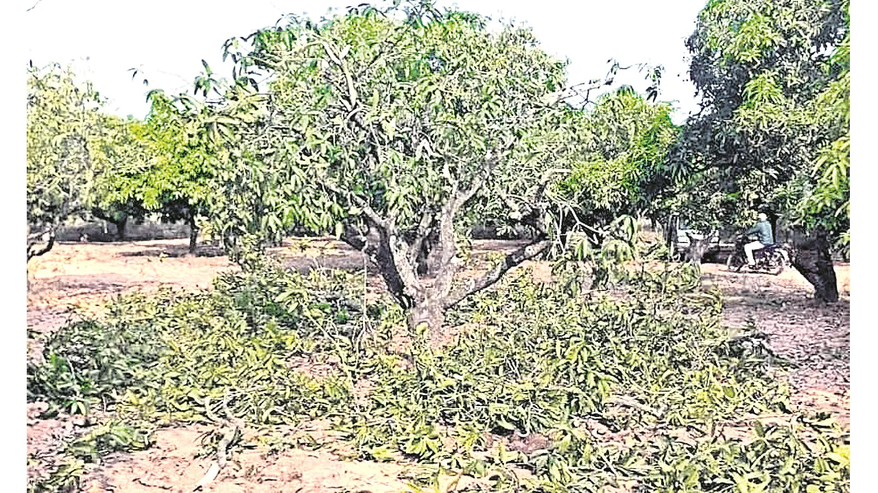 నేలరాలిన టన్నులకొద్దీ మామిడికాయలు