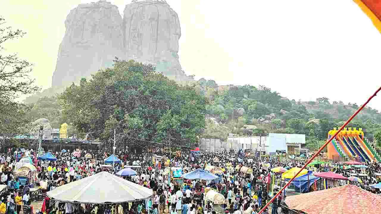 పెనుమూరు, జనవరి 17 (ఆంధ్రజ్యోతి): సంక్రాంతి సంబరాల్లో భాగంగా పెనుమూరు మండలంలోని ప్రముఖ పర్యాటక కేంద్రమైన పులిగుండు వద్ద శనివారం తిరునాళ్ల నిర్వహించారు. ఈ తిరునాళ్లకు ఆంధ్ర, తమిళనాడు, కర్ణాటక రాష్ట్రాల నుంచి భక్తులు పెద్ద ఎత్తున తరలివచ్చారు. గత ఏడాదితో పోలిస్తే ఈ ఏడాది అనూహ్యంగా పెరగడంతో ఆలయ ప్రాంగణం కిక్కిరిసింది. రోడ్లపై వాహనాలు ఎక్కడ పడితే అక్కడ పార్క్ చేయడంతో ట్రాఫిక్ జామ్ అయ్యింది. గంటల తరబడి వాహనదారులు, పాదచారులు ట్రాఫిక్లో చిక్కుకుని ఇక్కట్లు ఎదుర్కొన్నారు. ఎప్పుడూ వన్ వే పెట్టేవారు.. ఈ ఏడాది ఎందుకు పెట్టలేదు అని వచ్చినవారు చర్చించుకున్నారు. ఉదయం శేష వాహనంపై పార్వతీపరమేశ్వరులు గిరిప్రదక్షిణగా కొత్తరోడ్డు, సీఎస్ అగ్రహారం మీదుగా కొండ చుట్టు నిర్వహించి, పులిగుండు వద్దకు చేరుకున్నారు. ఈ సందర్భంగా పెనుమూరు శివాలయంలోని ఆది దంపతులను కూడా పులిగుండు వద్దకు ఆహ్వానించి భక్తులను అనుగ్రహించారు.