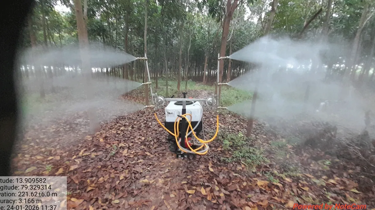 ఆధునిక సాంకేతికత ప్రవేశంతో రైతు పని సులభరతరమవుతోంది. ఇప్పటికే వ్యవసాయలో డ్రోన్లు ఇతోధికంగా సాయపడుతున్నాయి. కూలీల కొరత సమస్యను అధిగమించేలా చేస్తున్నాయి. ఈక్రమంలో తాజాగా రోబో అడుగుపెట్టి విప్లవాత్మక మార్పులకు శ్రీకారం చుడుతోంది. కూలీలు, ఖర్చులను తగ్గించడంలో కీలకపాత్ర పోషించనుంది. దేశీయంగా రూపొందిన ఈ బహుళ ప్రయోజనకారికి రోజుకోసారి బ్యాటరీ చార్జ్ చేస్తే 3నుంచి 5 గంటలపాటు సేవలందిస్తుంది. రోటావేటర్, బ్లేడ్, నాగలి, బూమ్ స్ర్పేయర్, మిస్ట్ బ్లోవర్లను ఇముడ్చుకున్న ఈ రోబో రోజుకు 40 నుంచి 50 మంది కూలీల పని చేయగలదు. స్ర్పేయర్తో మందులను పిచికారి చేస్తుంది. 30 నుంచి 40 శాతం వరకు కెమికల్స్ వృథాను అరికడుతుంది. డీజిల్ అవసరంలేదు. దీంతో కర్బన్ ఉద్గారాలూ తగ్గుతాయి.రైల్వేకోడూరు మండలం ఎస్ఆర్ కండ్రిగకు చెందిన వెంకట్రామరాజు పొలంలో శనివారం ఈ రోబోతో వ్యవసాయశాఖ అధికారి సందీప్ ప్రయోగాత్మకంగా పిచికారి చేసే విధానాన్ని రైతులకు వివరించారు.