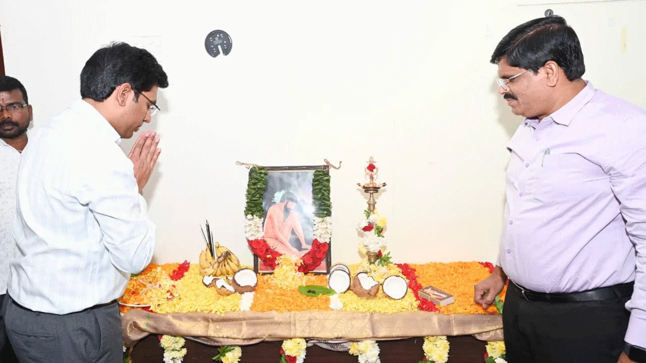 తిరుపతి(కలెక్టరేట్), జనవరి 19(ఆంధ్రజ్యోతి): ‘సామాన్యులకు అర్థమయ్యేలా సరళమైన ప్రజాభాషలో వేమన పద్యాలున్నాయి. వాటిలోని తాత్విక భావనలు నేటి సమాజానికి దిక్సూచిగా నిలుస్తున్నాయి’ అని కలెక్టర్ వెంకటేశ్వర్ అన్నారు. కలెక్టరేట్లో సోమవారం యోగివేమన జయంతి సందర్భంగా ఆయన చిత్రపటానికి పూలమాల వేసి నివాళులర్పించారు. తన పద్యాల ద్వారా కుల, మత, ఆర్ధిక బేధాలను ఖండిస్తూ సమానత్వం, మానవత్వం, సత్యం, నైతిక విలువలను ప్రజల్లో నాటేందుకు వేమన ఎంతో కృషి చేశారన్నారు. ఈ కార్యక్రమంలో ఇన్ఛార్జి జేసీ గోవిందరావు, డీఆర్వో నరసింహులు, శ్రీకాళహస్తి ఆర్డివో భానుప్రకా్షరెడ్డి, సెట్విన్ సీఈవో యశ్వంత్, టూరిజం అధికారి జనార్దన్రెడ్డి తదితరులు పాల్గొన్నారు.