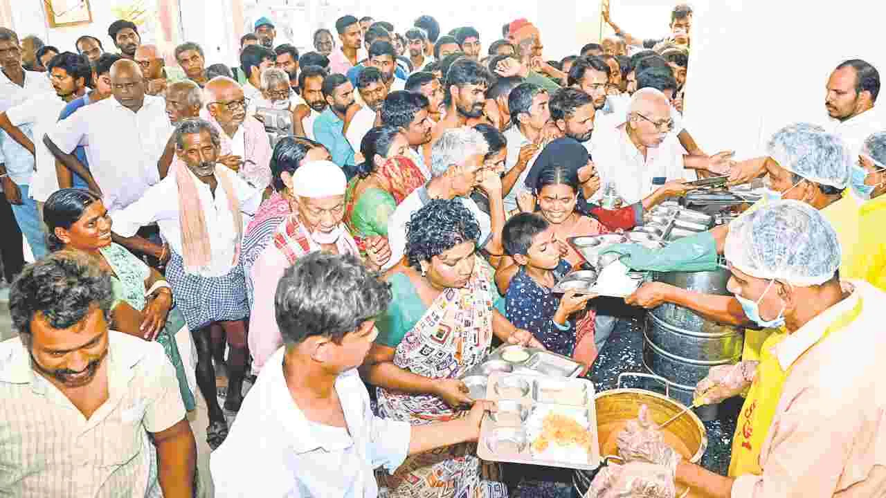 చంద్రబాబు పుట్టినరోజు వేడుకల్లో భాగంగా అన్న క్యాంటీన్లలో ఉచిత భోజనం అందించడంతో పేదలు పోటెత్తారు. రాష్ట్రంలోని పలు క్వాంటీన్ల వద్ద ఉదయం 11 గంటలకే అన్నార్థులు బారులు తీరారు.