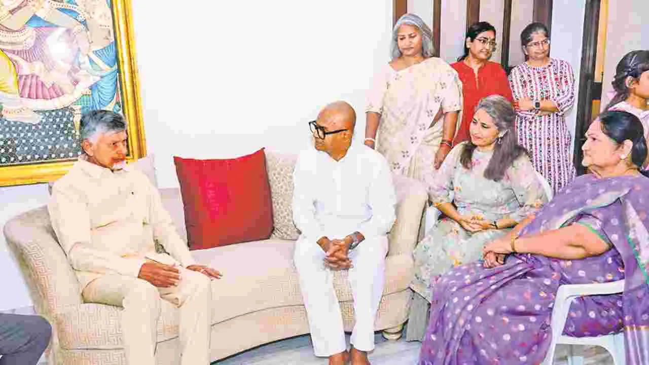 ఏపీ సీఎం చంద్రబాబు నాయుడు ఆదివారం హైదరాబాద్లో పర్యటించి, ఇటీవల మరణించిన కేంద్ర మాజీ మంత్రి కావూరు సాంబశివరావు, ఉమ్మడి ఏపీ మాజీ డీజీపీ హెచ్.జె.దొర కుటుంబ సభ్యులను పరామర్శించారు.