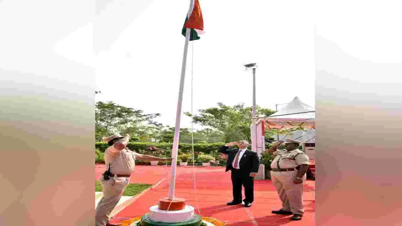 అమరావతి, తుళ్లూరు, జనవరి 26(ఆంధ్రజ్యోతి): ‘భారత రాజ్యాంగం ప్రజాస్వామ్యానికి మార్గదర్శి. న్యాయ వ్యవస్థకు దీప స్తంభం’ అని హైకోర్టు ప్రధాన న్యాయమూర్తి జస్టిస్ ధీరజ్సింగ్ ఠాకూర్ అన్నారు. ఆంధ్రప్రదేశ్ రాష్ట్ర ఉన్నత న్యాయస్థానం ఆవరణలో 77వ భారత గణతంత్ర వేడుకలు సోమవారం ఘనంగా జరిగాయి. హైకోర్టు ప్రధాన న్యాయమూర్తి జస్టిస్ ధీరజ్సింగ్ ఠాకూర్ జాతీయ జెండాను ఆవిష్కరించి పోలీస్ గౌరవ వందనాన్ని స్వీకరించారు. అనంతరం ఆయన మాట్లాడారు. ‘చట్టాధిపత్యం, వివక్ష రహిత సమాజం, పౌర హక్కుల పరిరక్షణ, ప్రజల సంకల్పాధిపత్యం అనే మూల సూత్రాలు భారత ప్రజాస్వామ్య బలాన్ని ప్రతిబింబిస్తున్నాయి. భారత ప్రజల ఆశ, విశ్వాసం, పునరుద్ధరణకు గణతంత్ర దినోత్సవం ప్రతీకగా నిలుస్తుంది. ప్రజాస్వామ్యం, న్యాయం, స్వేచ్ఛ, సమానత్వం, హక్కుల సమన్వయంగా ప్రతి పౌరుడికి నిర్భయంగా జీవించే, స్వప్నాలను సాకారం చేసుకునే హక్కును ఇస్తుంది. బలమైన, ఐక్యమైన సుస్థిరమైన, ప్రగతిశీల భారత నిర్మాణానికి అందరం కలిసికట్టుగా కృషి చేయాలి’ అని సీజే పిలుపునిచ్చారు. అదనపు సొలిసిటర్ జనరల్ చల్లా ధనుంజయ, అడ్వకేట్ జనరల్ దమ్మాలపాటి శ్రీనివాస్, బార్ కౌన్సిల్ అధ్యక్షుడు ద్వారకానాథ్ రెడ్డి, అడ్వకేట్స్ అసోసియేషన్ ఉపాధ్యక్షుడు కేవీ రఘువీర్ తదితరులు ప్రసంగించారు. ఈ వేడుకల్లో పలువురు న్యాయమూర్తులు, హైకోర్టు రిజిస్ర్టార్ జనరల్, పలువురు రిజిస్ట్రార్లు, బార్ అసోసియేషన్, బార్ కౌన్సిల్ సభ్యులు పాల్గొన్నారు.
