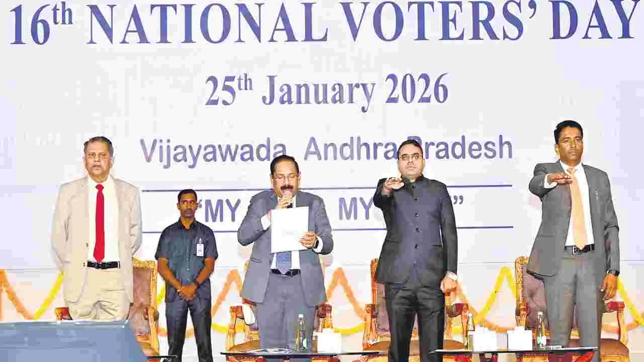 రాష్ట్ర ఎన్నికల ప్రధానాధికారి (సీఈవో) వివేక్ యాదవ్ మాట్లాడుతూ.. గతంలో ఓటు నమోదు చేసుకోవడానికి జనవరి 1వ తేదీని మాత్రమే ప్రామాణికంగా తీసుకునేవారని.. ఇప్పుడు కొత్తచట్టం ప్రకారం 18 ఏళ్లు నిండిన వారు సంవత్సరంలో నాలుగు తేదీల్లో (జనవరి 1, ఏప్రిల్ 1, జూలై 1, అక్టోబరు 1) ఓటరుగా నమోదు చేసుకోవచ్చన్నారు. కేవలం ఎపిక్ కార్డు ఉంటే ఓటువేసే హక్కు రాదని, ఓటరు జాబితాలో అభ్యర్థి పేరు ఉందో లేదో సీఈవో వెబ్సైట్లో తప్పనిసరిగా తనిఖీ చేసుకోవాలని సూచించారు. రాష్ట్ర ఎన్నికల మాజీ కమిషనర్ నిమ్మగడ్డ రమేశ్కుమార్ మాట్లాడుతూ.. ఓటు వేయడం రాజ్యాంగంలోని 19వ అధికరణ ప్రకారం లభించే భావప్రకటన, వ్యక్తిగత స్వేచ్ఛలో భాగమని సుప్రీంకోర్టు స్పష్టం చేసిందన్నారు. ఒక వ్యక్తి సాధారణంగా ఎక్కడ నివసిస్తుంటే అక్కడ ఓటుహక్కు కల్పించాలని.. వ్యక్తి పుట్టిన చోటు, ఉద్యోగం చేసే చోటు వేర్వేరుగా ఉండవచ్చని.. తన ఓటు ఎక్కడ ఉండాలో నిర్ణయించుకునే స్వేచ్ఛను అతడికివ్వాలని తెలిపారు. తర్వాత నూతనంగా ఓటు నమోదు చేసుకున్న నలుగురికి ఎపిక్ కార్డులు అందజేశారు. ఓటుహక్కు ప్రాముఖ్యంపై మతం, కులం, జాతి, భాషాపరమైన ప్రలోభాలకు నవ్వకుండా ప్రతి ఎన్నికల్లో నిర్భయంగా ఓటు వేస్తామని కార్యక్రమానికి హాజరైన వారితో సీఎస్ ప్రతిజ్ఞ చేయించారు. ఉత్తమ ఎన్నికల నిర్వహణ అవార్డులను పలు జిల్లాల కలెక్టర్లకు అందించారు. అంతకుముందు భారత ఎన్నికల ప్రధాన కమిషనర్ జ్ఞానేశ్కుమార్ వర్చువల్గా మాట్లాడారు. ‘2025 ఎన్నికల కమిషన్కు గణనీయమైన విజయాలు, ఆవిష్కరణల సంవత్సరంగా నిలిచింది. ఓటర్ల జాబితాలో కచ్చితత్వాన్ని, సమగ్రతను పెంపొందించడం, ఓటింగ్ ప్రక్రియను ప్రతి ఓటరుకు మరింత సులభంగా అందుబాటులోకి తెచ్చి.. ఎన్నికల సవాళ్లను సమర్థంగా ఎదుర్కోవడమే ఈసీ లక్ష్యం’ అని తెలిపారు.